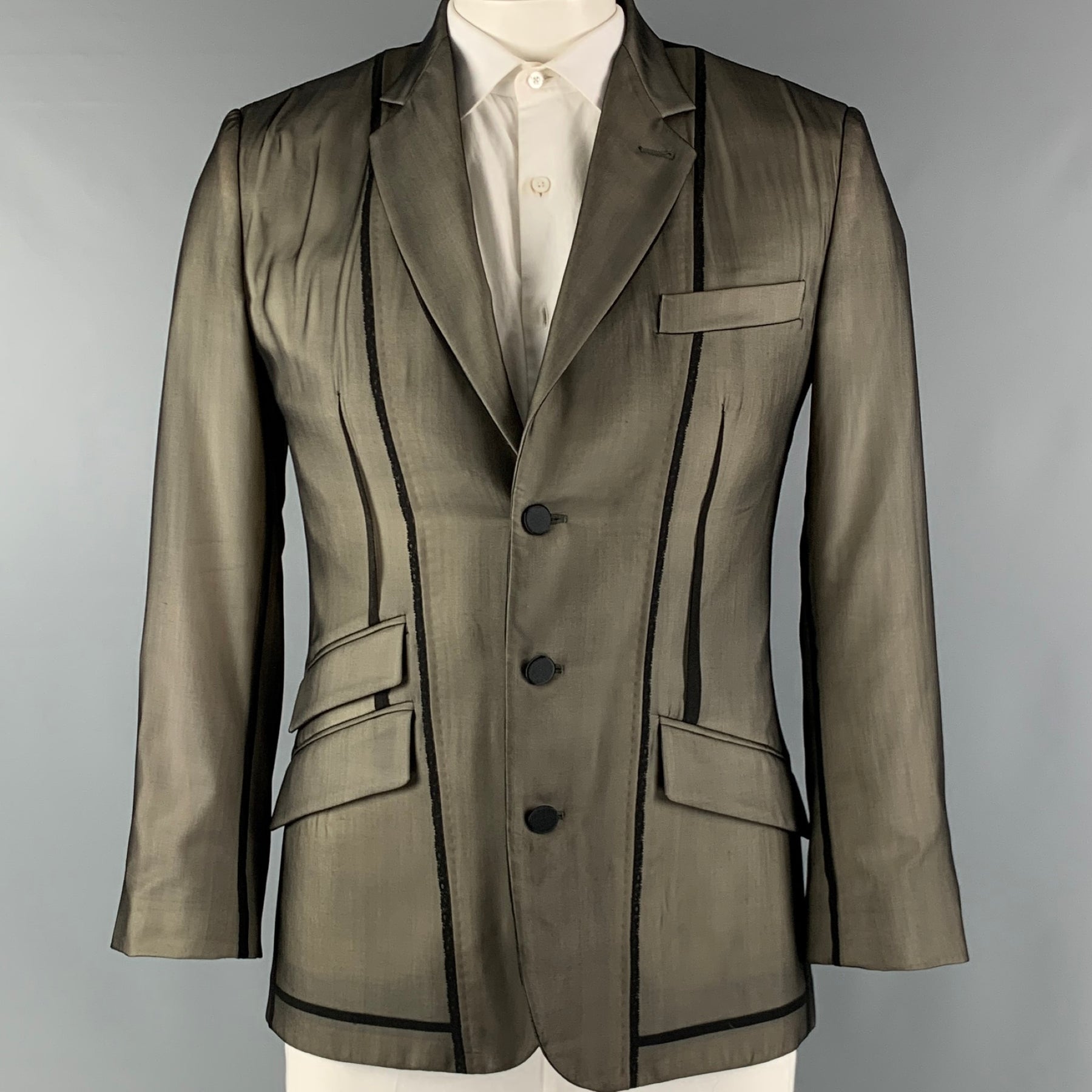 JOHN GALLIANO Size 42 Beige Black Silk 3 Button Sport Coat