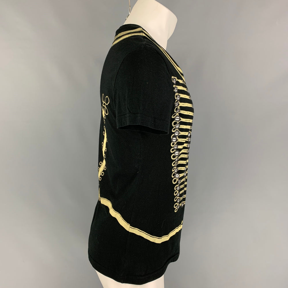 JOHN GALLIANO Size M Black Gold Print Cotton Crew-Neck T-shirt