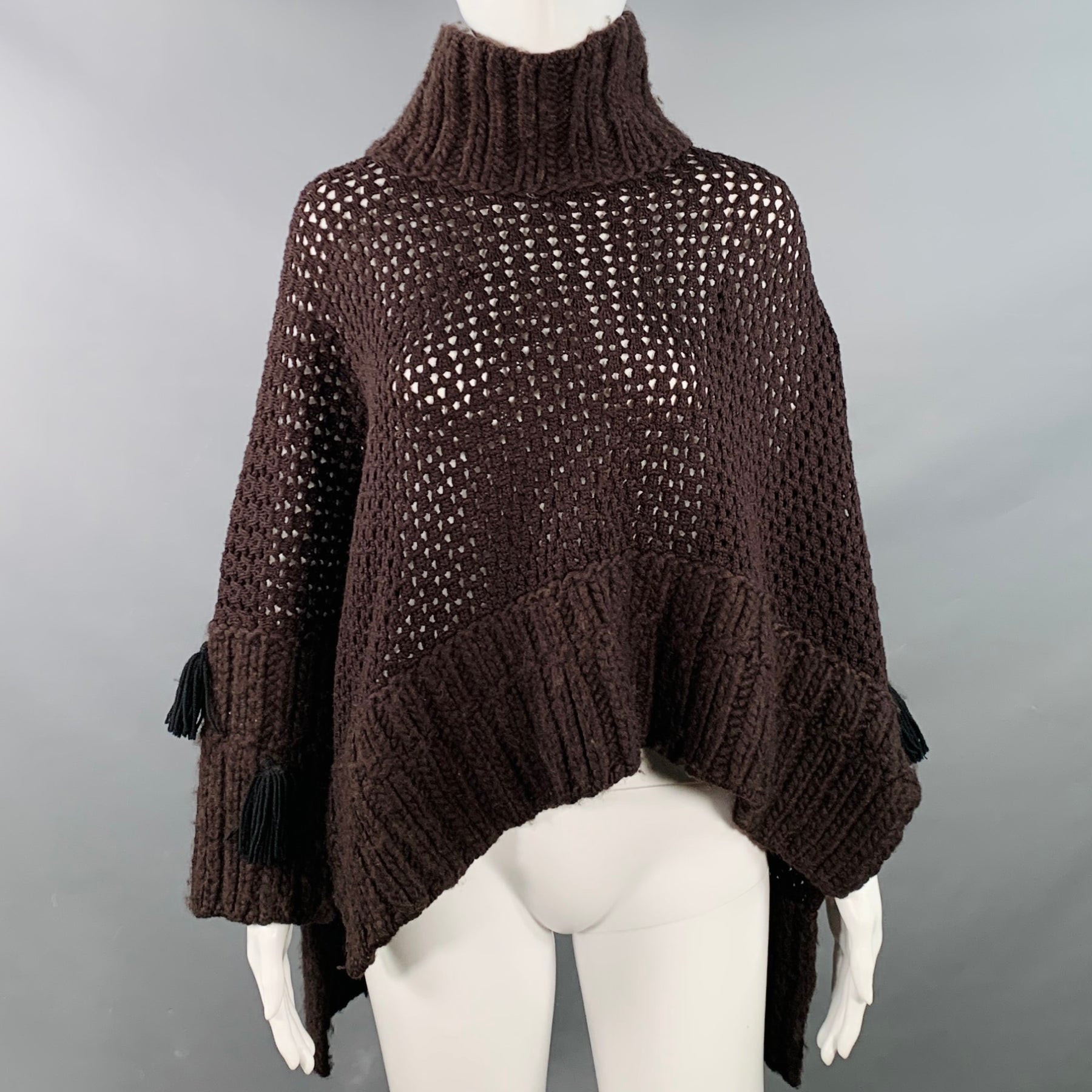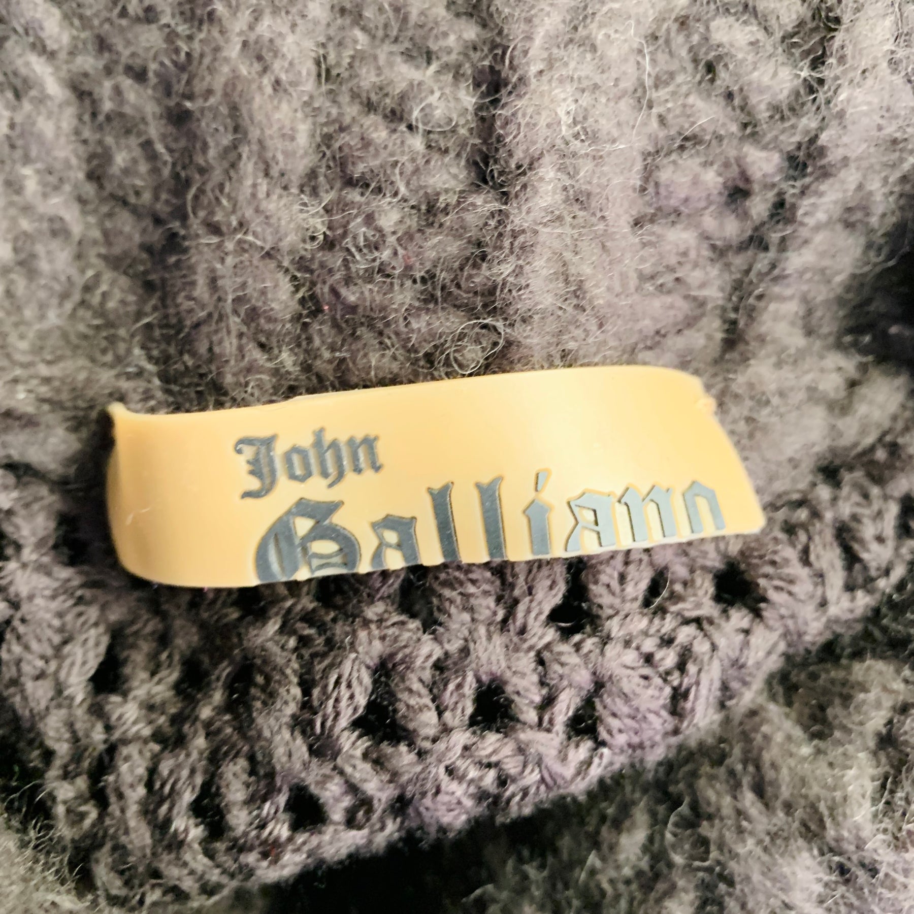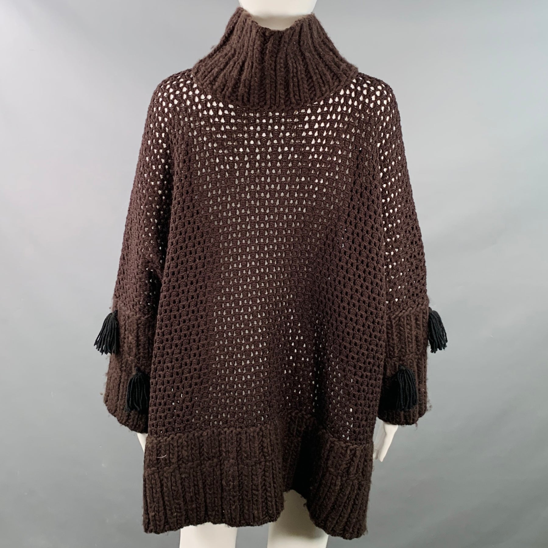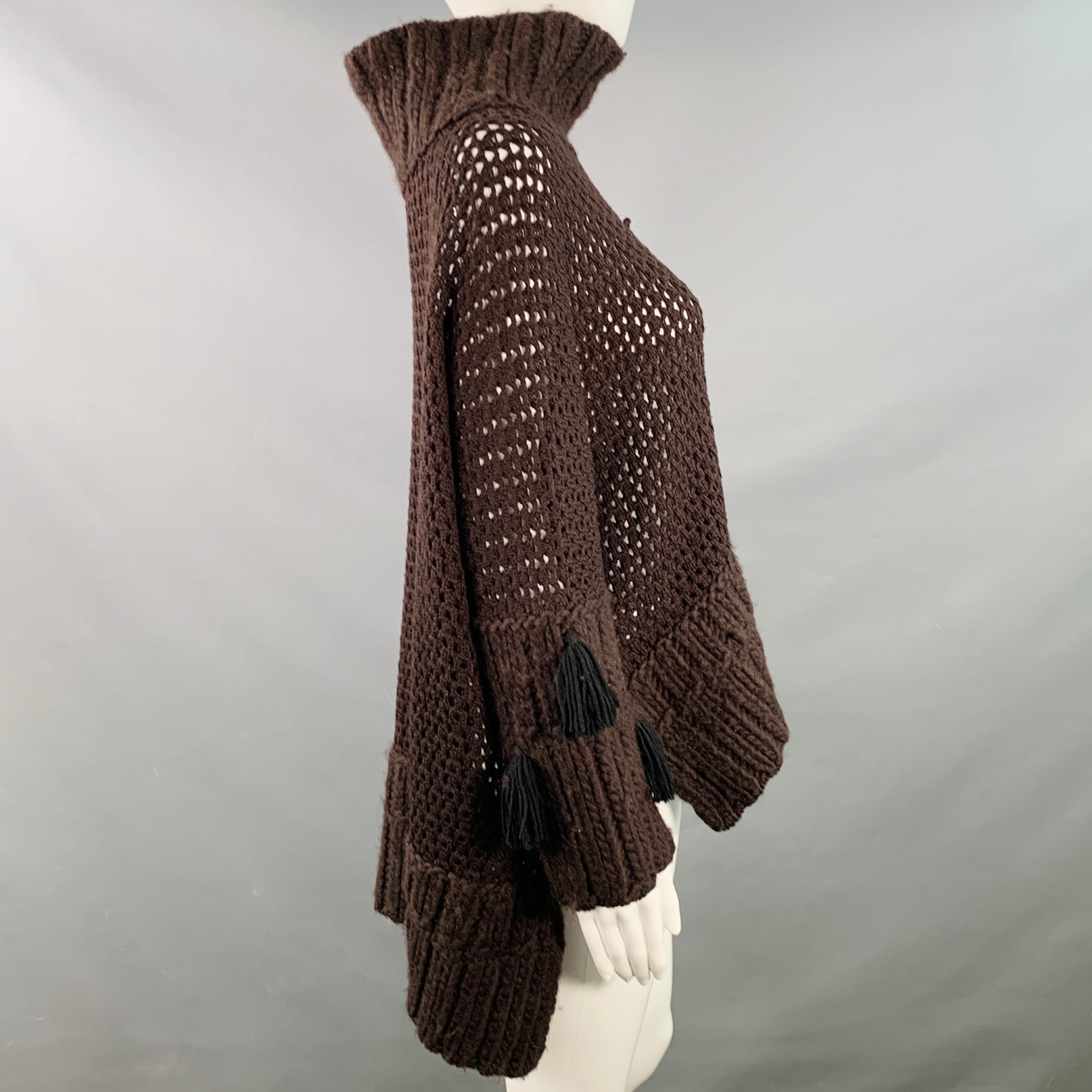 JOHN GALLIANO sweater in a brown wool blend knit featuring a chunky knit style, long sleeves with black tassel details, and turtleneck. Made in Italy.