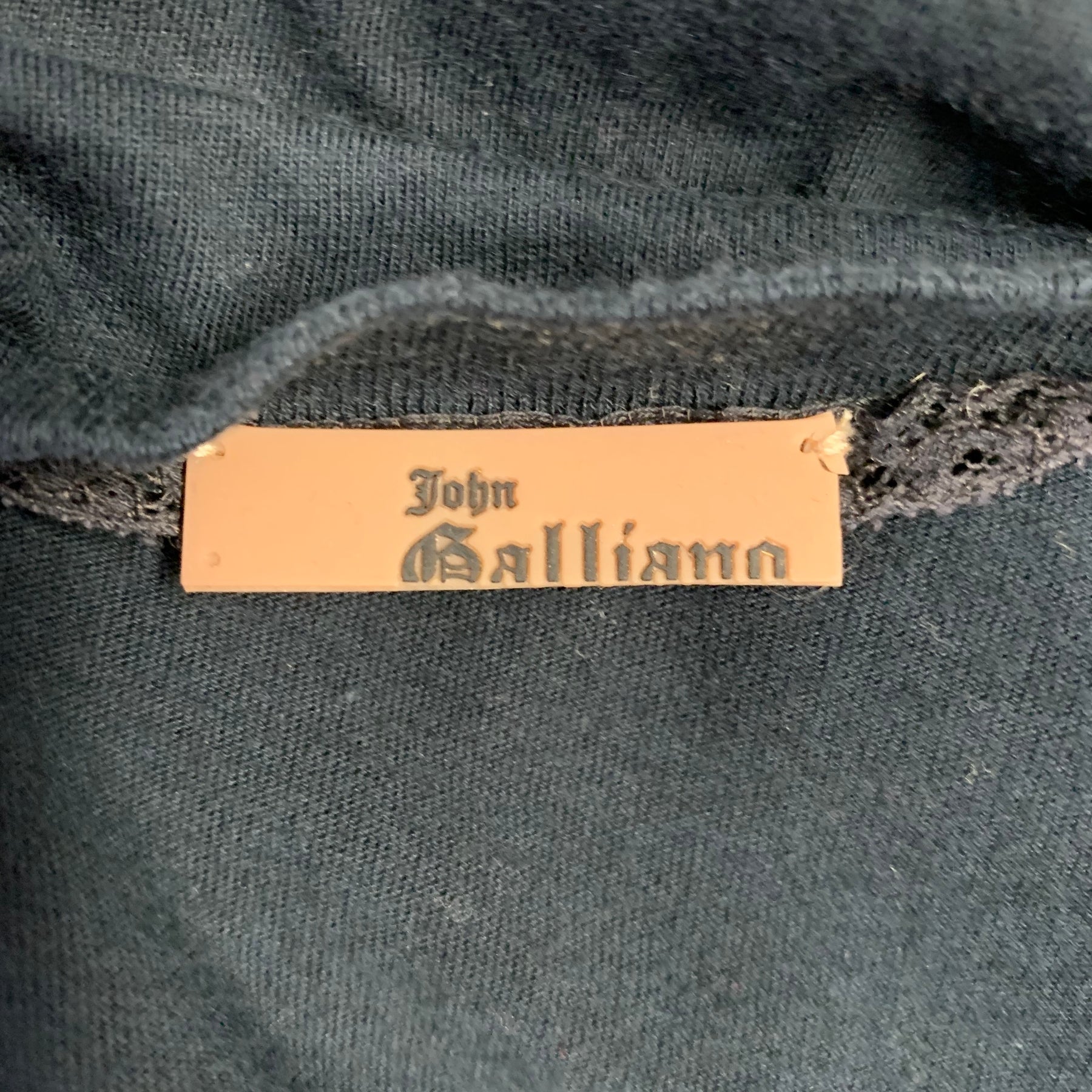 JOHN GALLIANO Size S Black Monogram Print Cotton V-Neck T-shirt