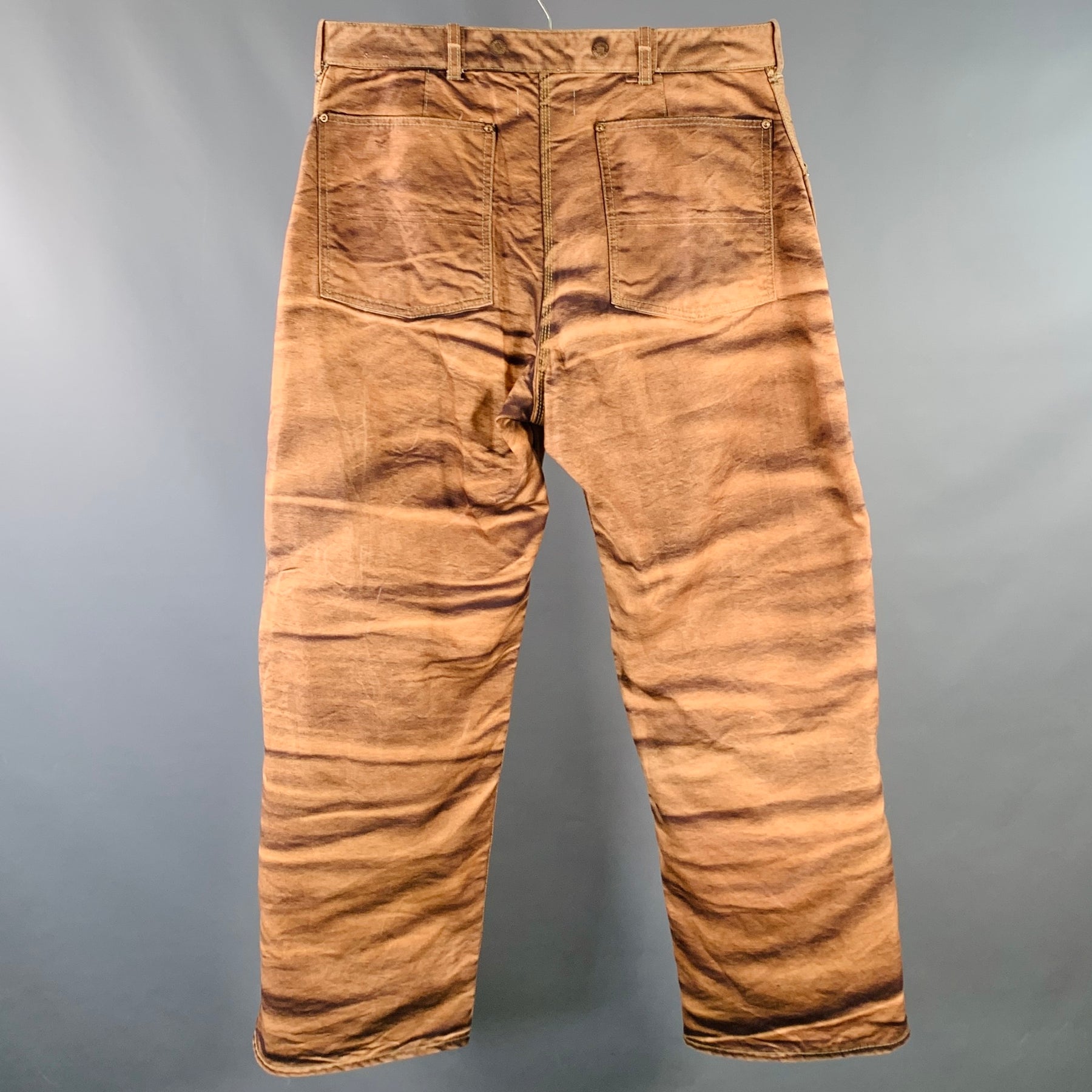 JUNYA WATANABE x CARHARTT 2023 Size S Brown Marble Print Cotton Worker Casual Pants