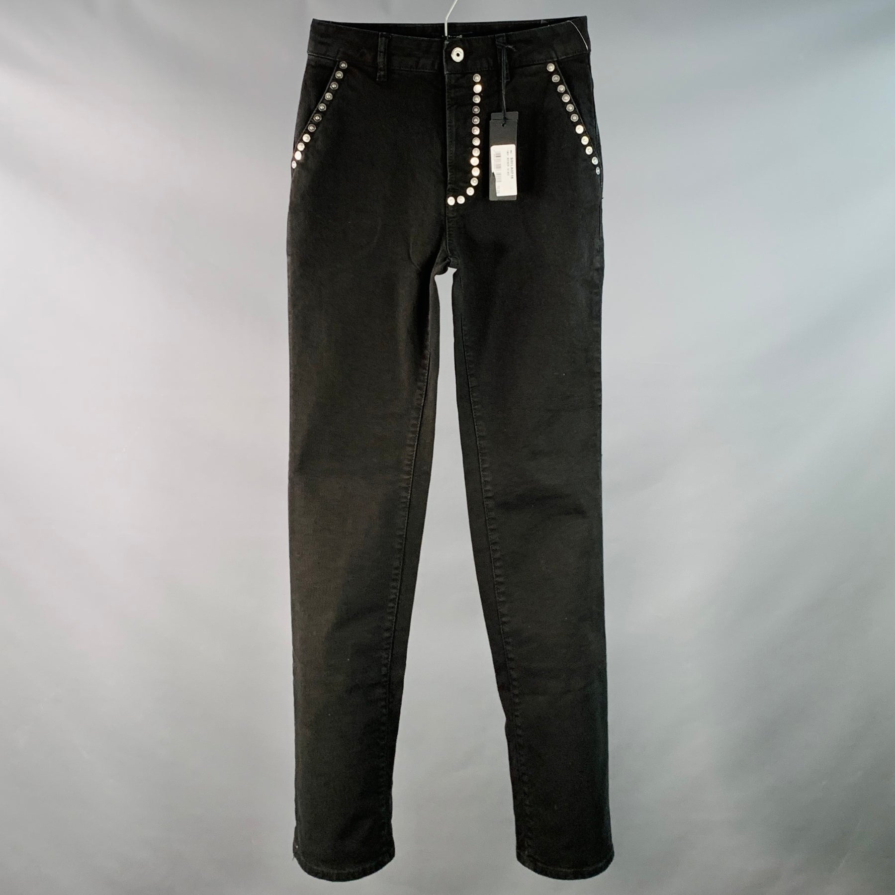 JUST CAVALLI Size 26 Black Silver Cotton Blend Denim Studded Button Fly Jeans