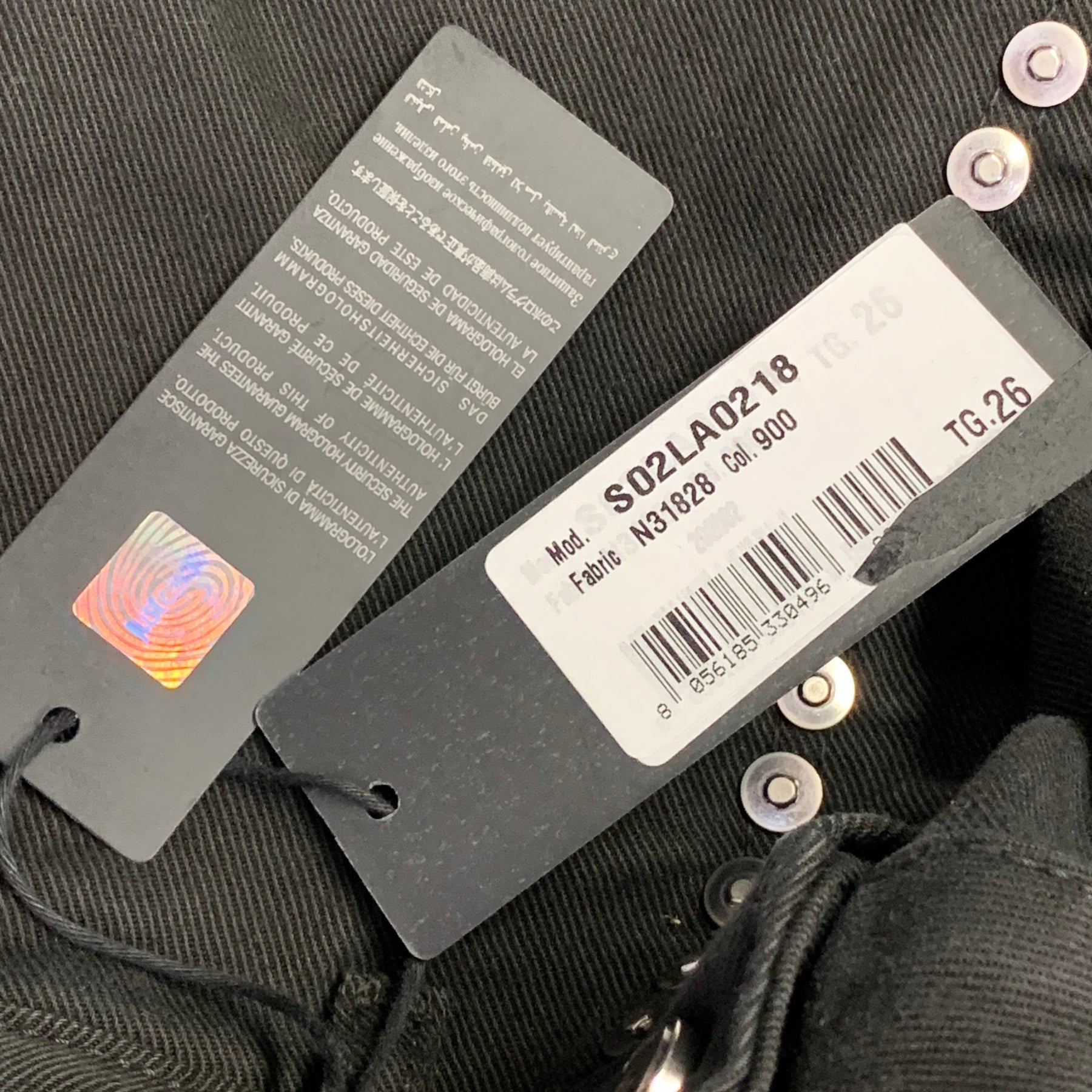 JUST CAVALLI jeans in a black cotton stretch blend twill featuring a silver tone metal studded front design, straight leg, and button fly closure. Made in Italy.
