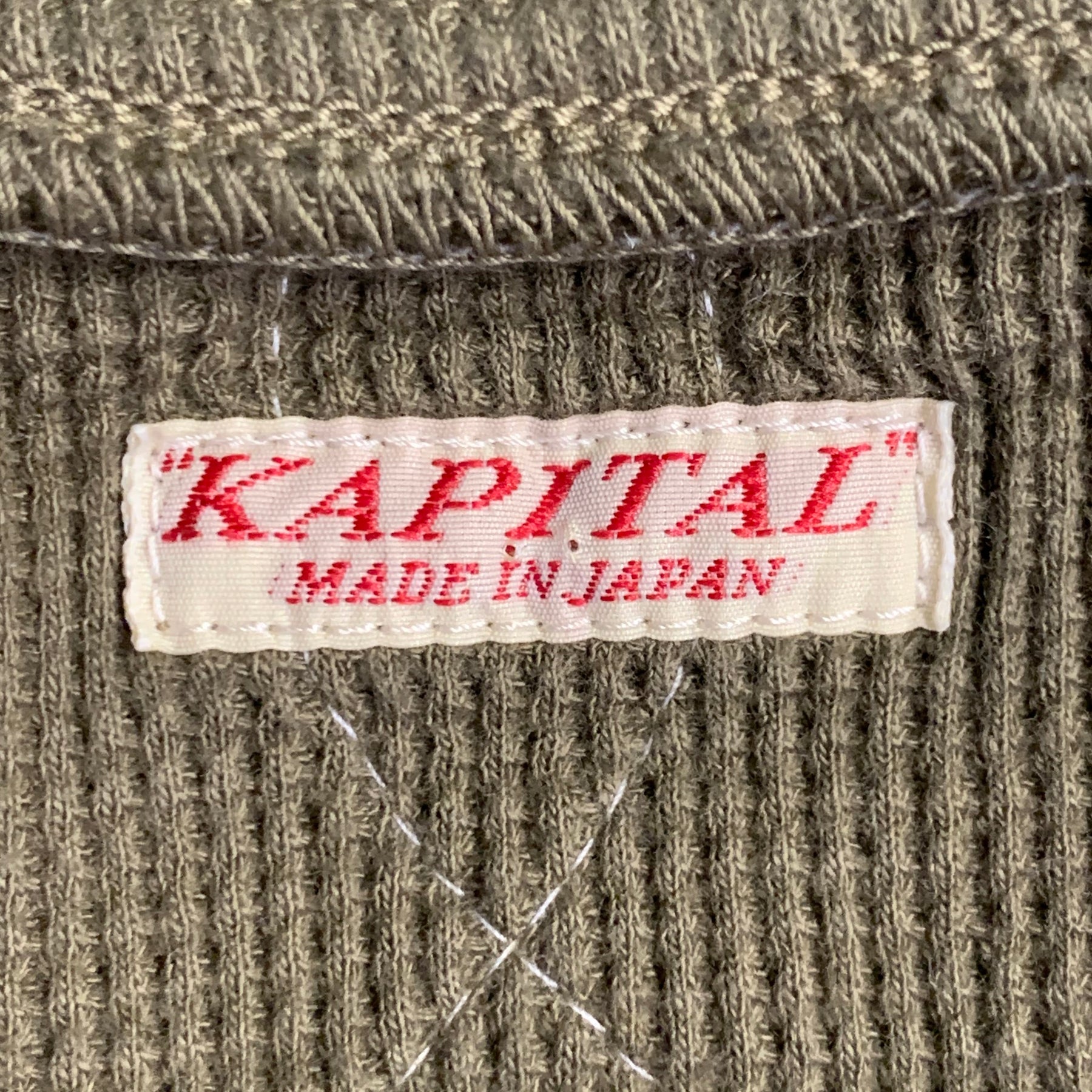 KAPITAL Size XL Olive Green Quilted Cotton Blend Crew Neck Sweatshirt