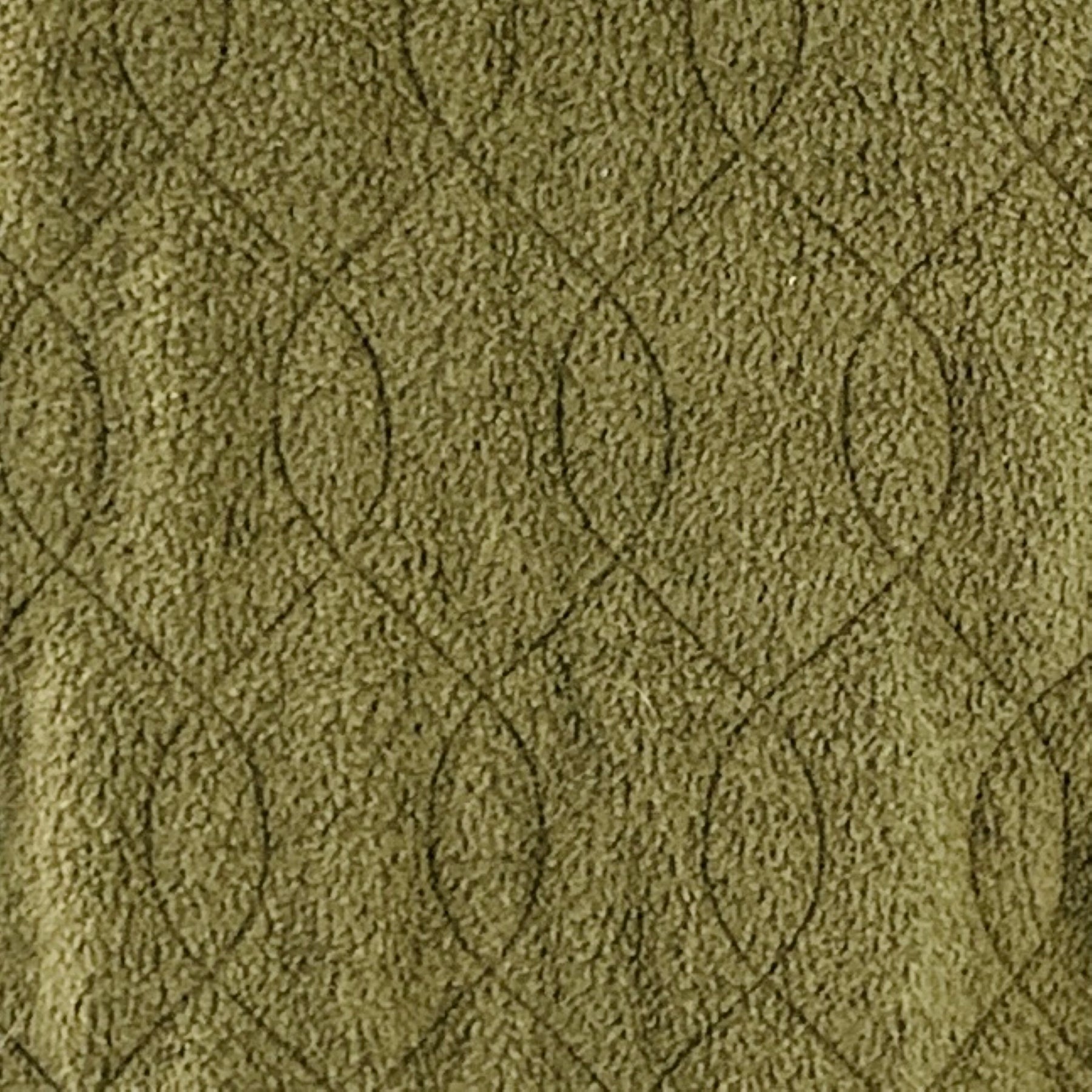 KAPITAL sweatshirt in an olive green cotton blend fabric featuring an all over quilted design with fleece front, three pockets (two slip, one zip with gold tone hardware), and crew neck.