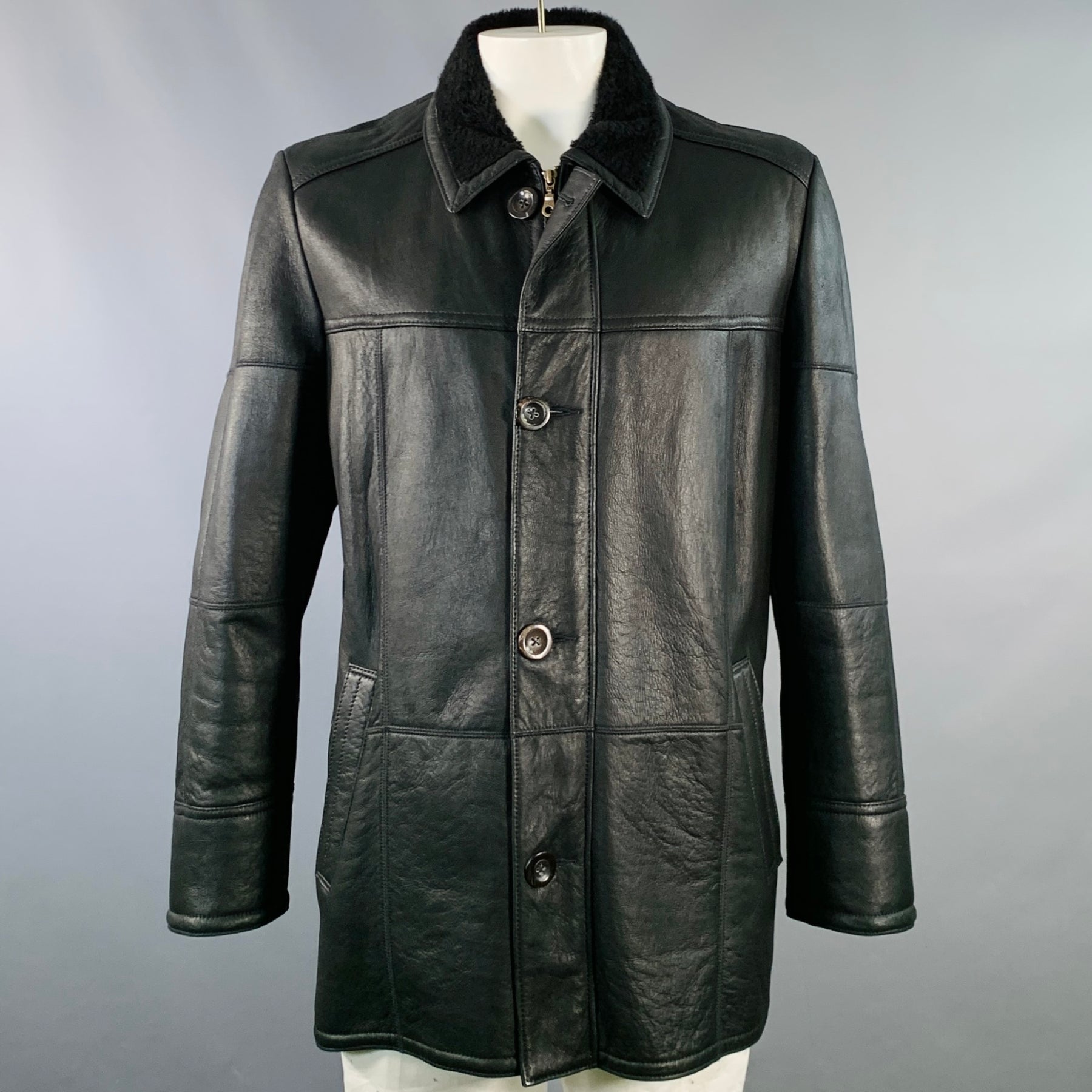 KNIGHT OF NEW ZEALAND Size L Black Lambskin Leather Zip Buttons Coat