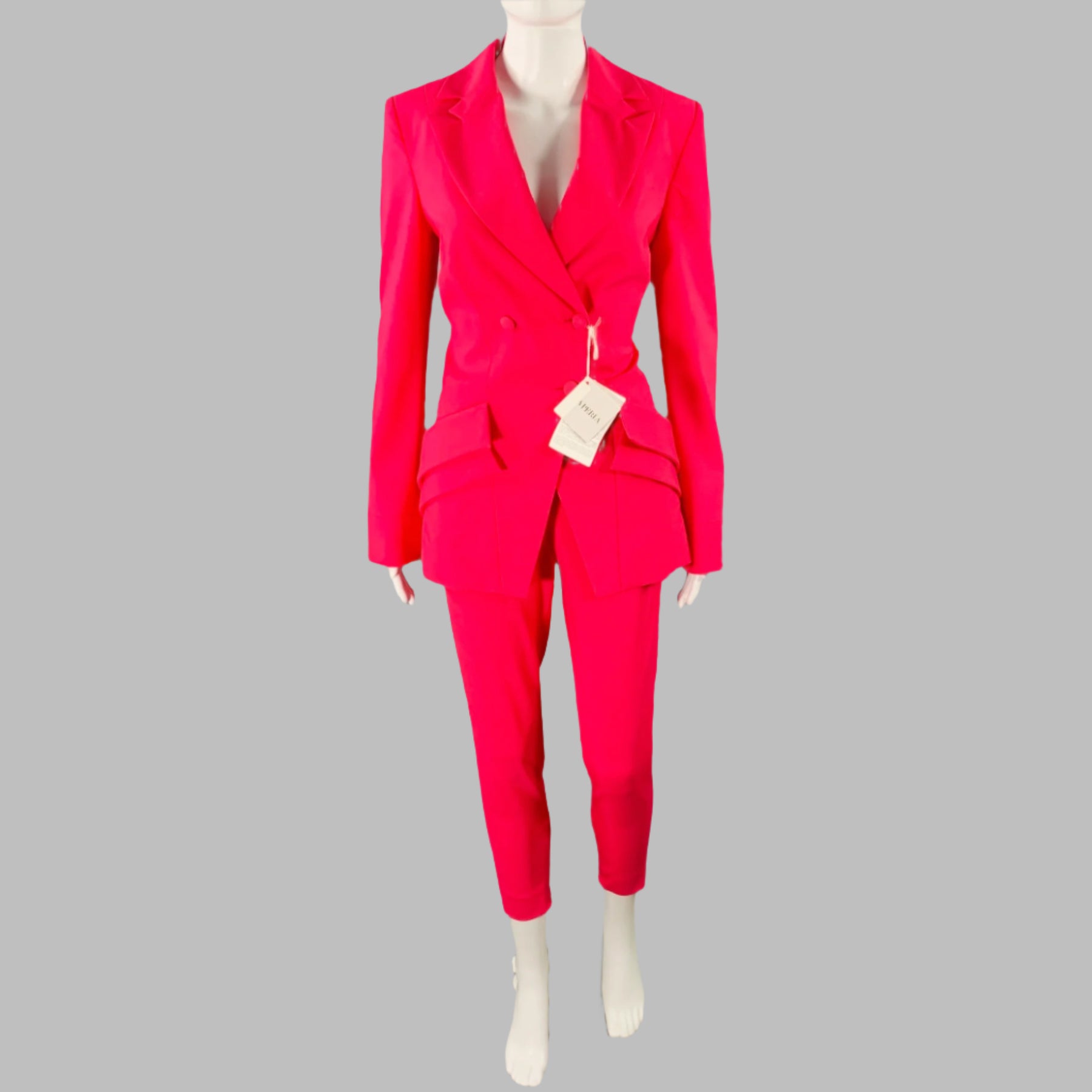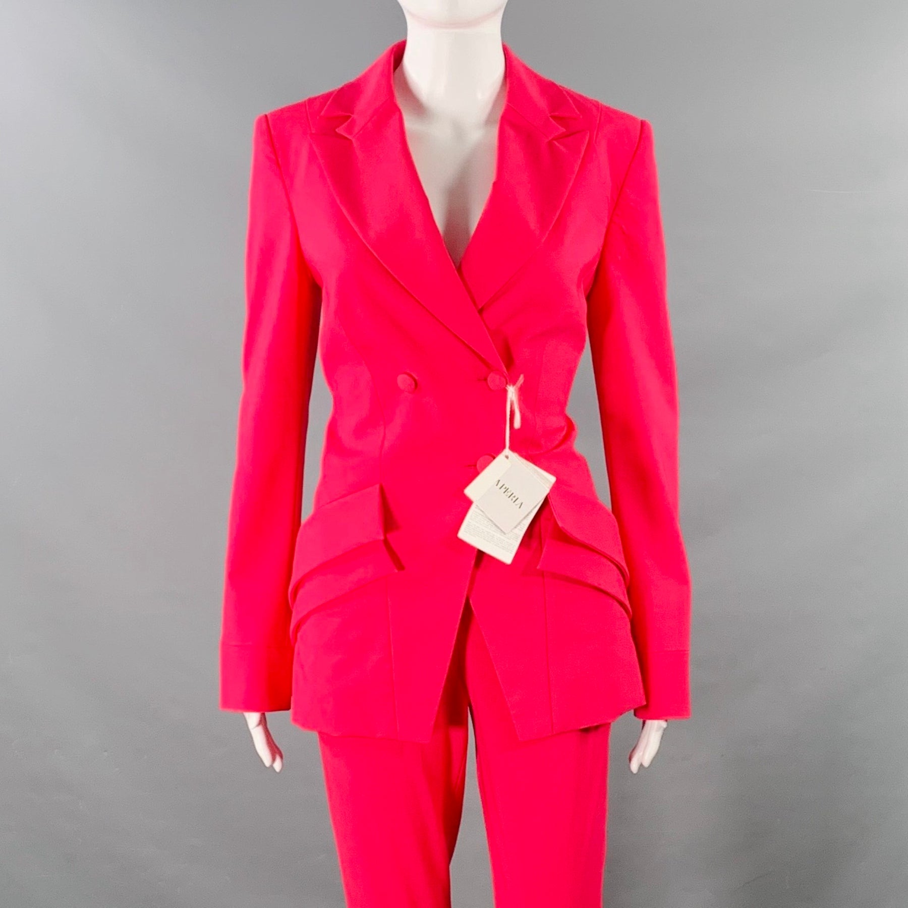 LA PERLA Size 4 Hot Pink Wool Blend Double Breasted Pantsuit