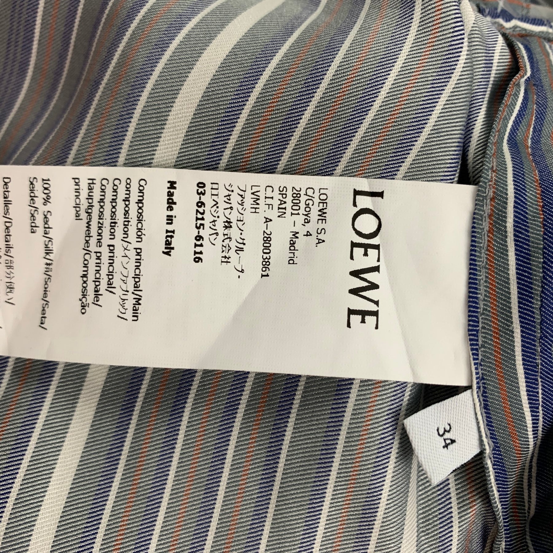 LOEWE Size 2 Grey White Blue Silk Stripe Asymmetrical Set