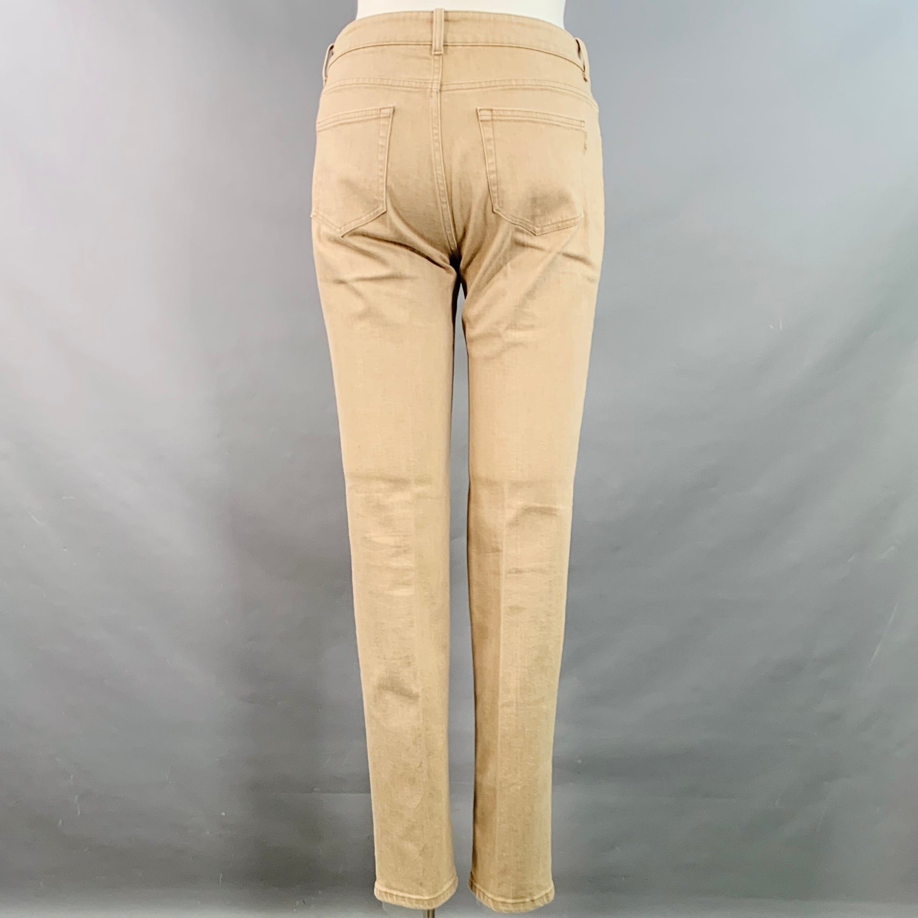 LORO PIANA casual pants in a beige cotton blend twill featuring a jean cut style with five pockets, tapered leg, and zip fly closure. Made in Italy.