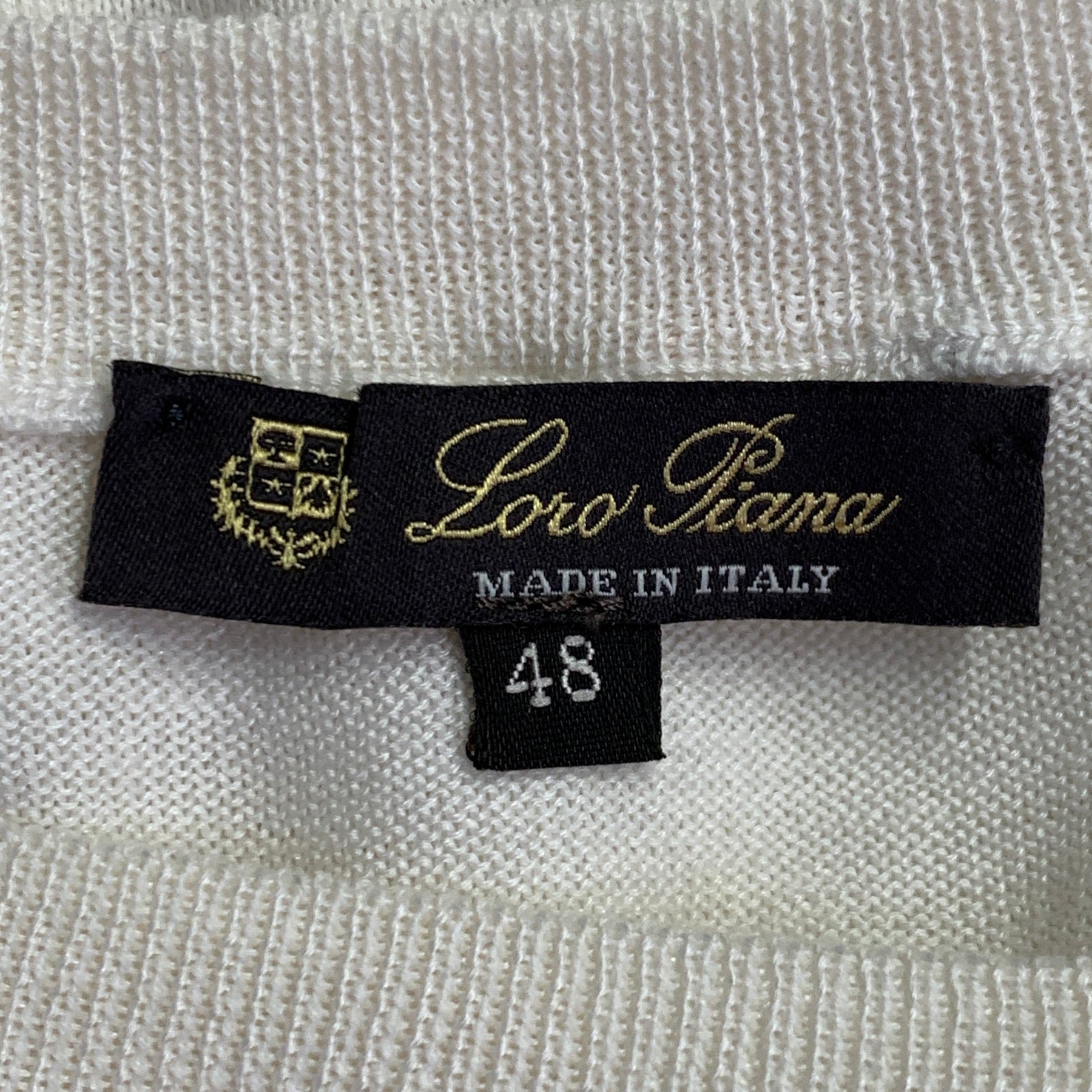 LORO PIANA Size 12 Cream Silk Cotton Jersey Crew Neck Pullover
