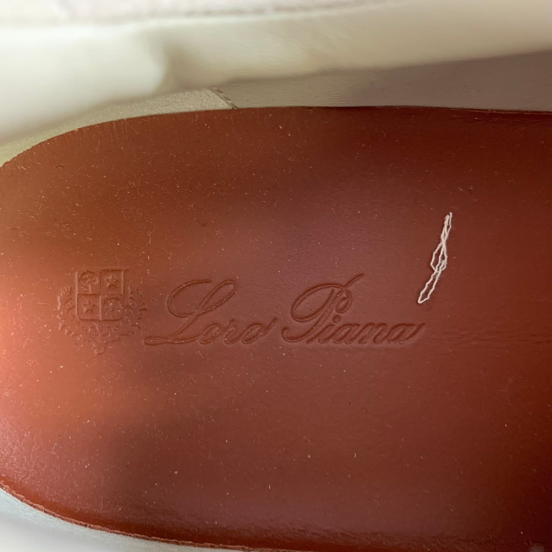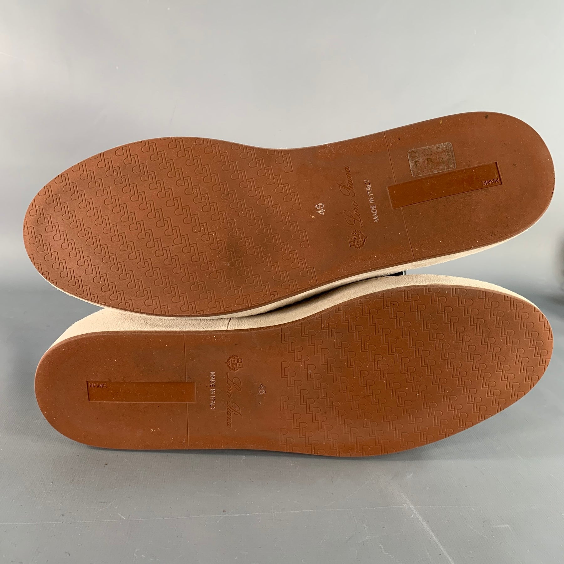 LORO PIANA sneakers in a buttery soft grey suede featuring a low top style, covered midsoles, and rubber sole. Comes with dust bag. Shoe trees not included. Made in Italy.