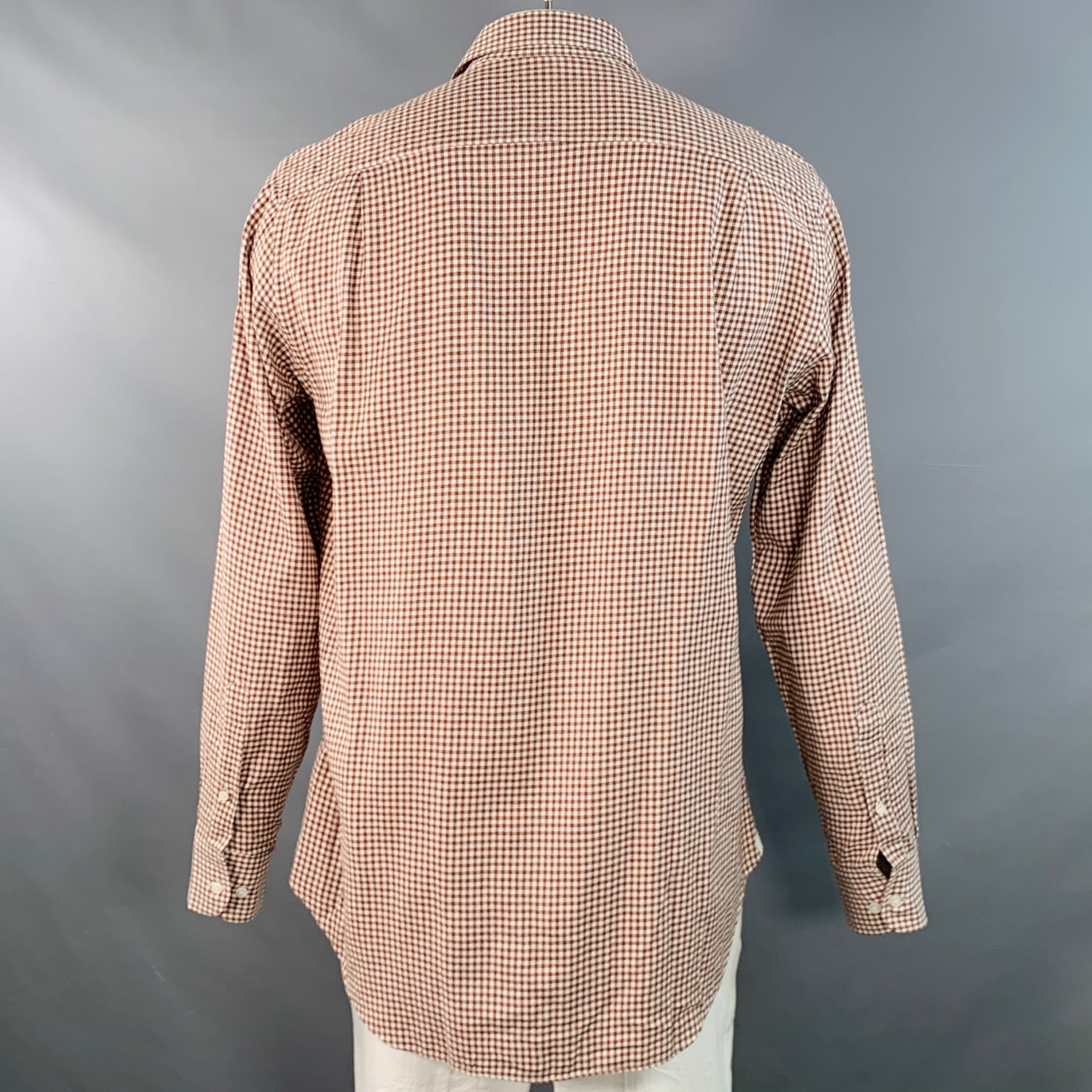 LORO PIANA Size L Brown White Gingham Cotton One Pocket Long Sleeve Shirt