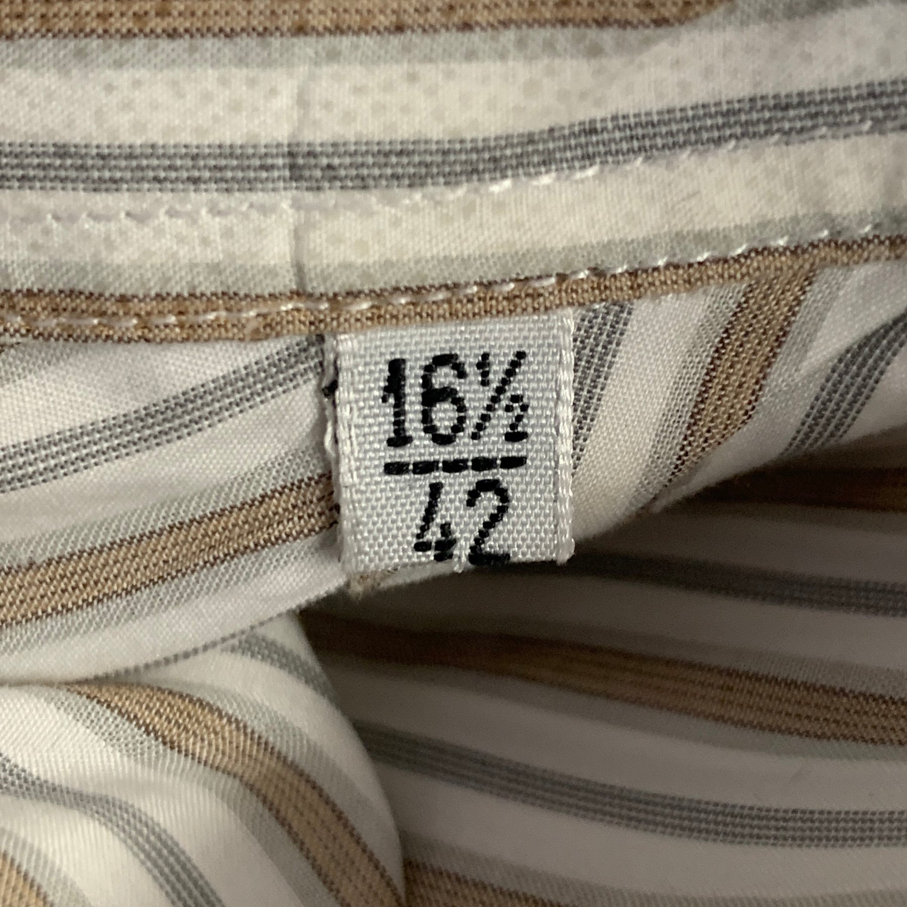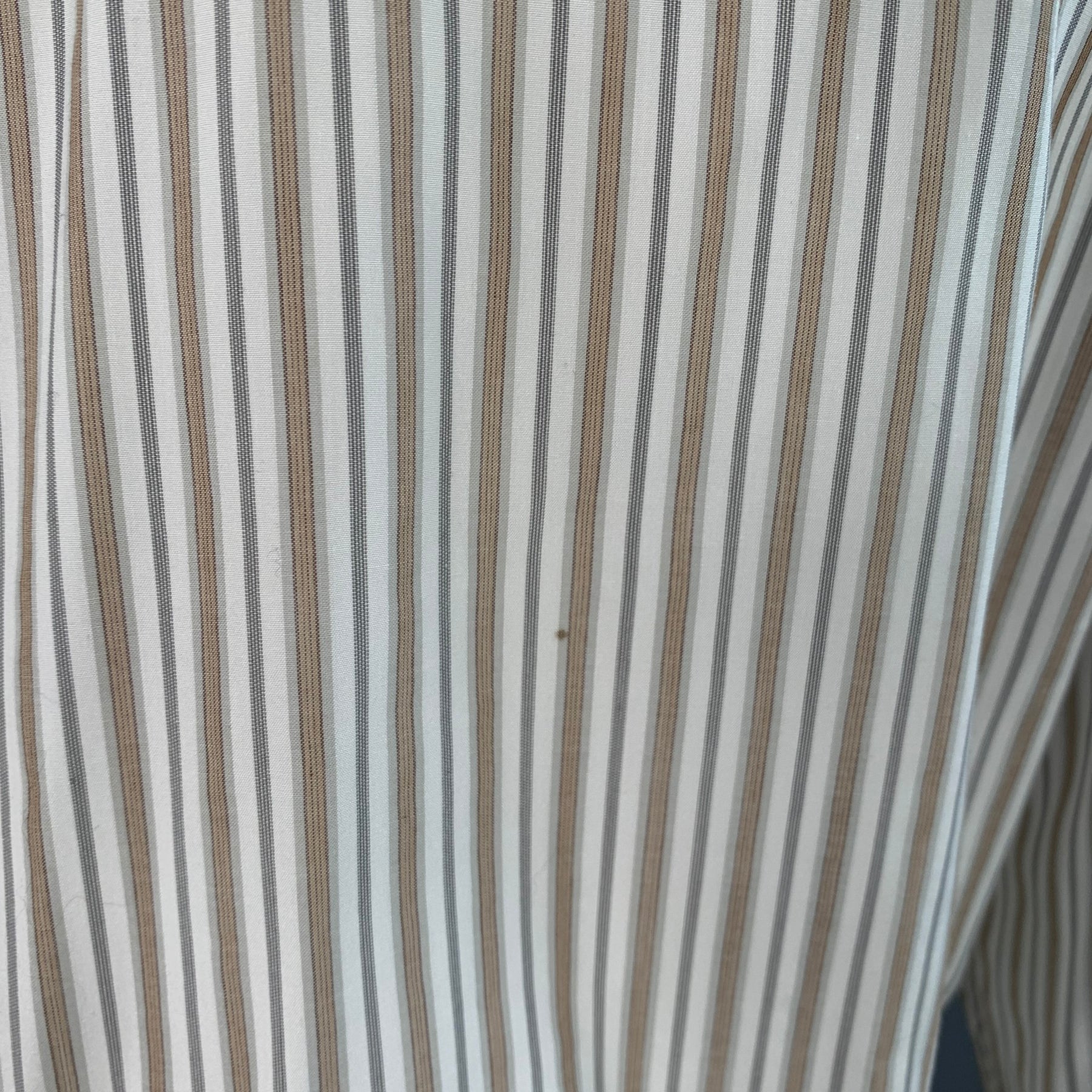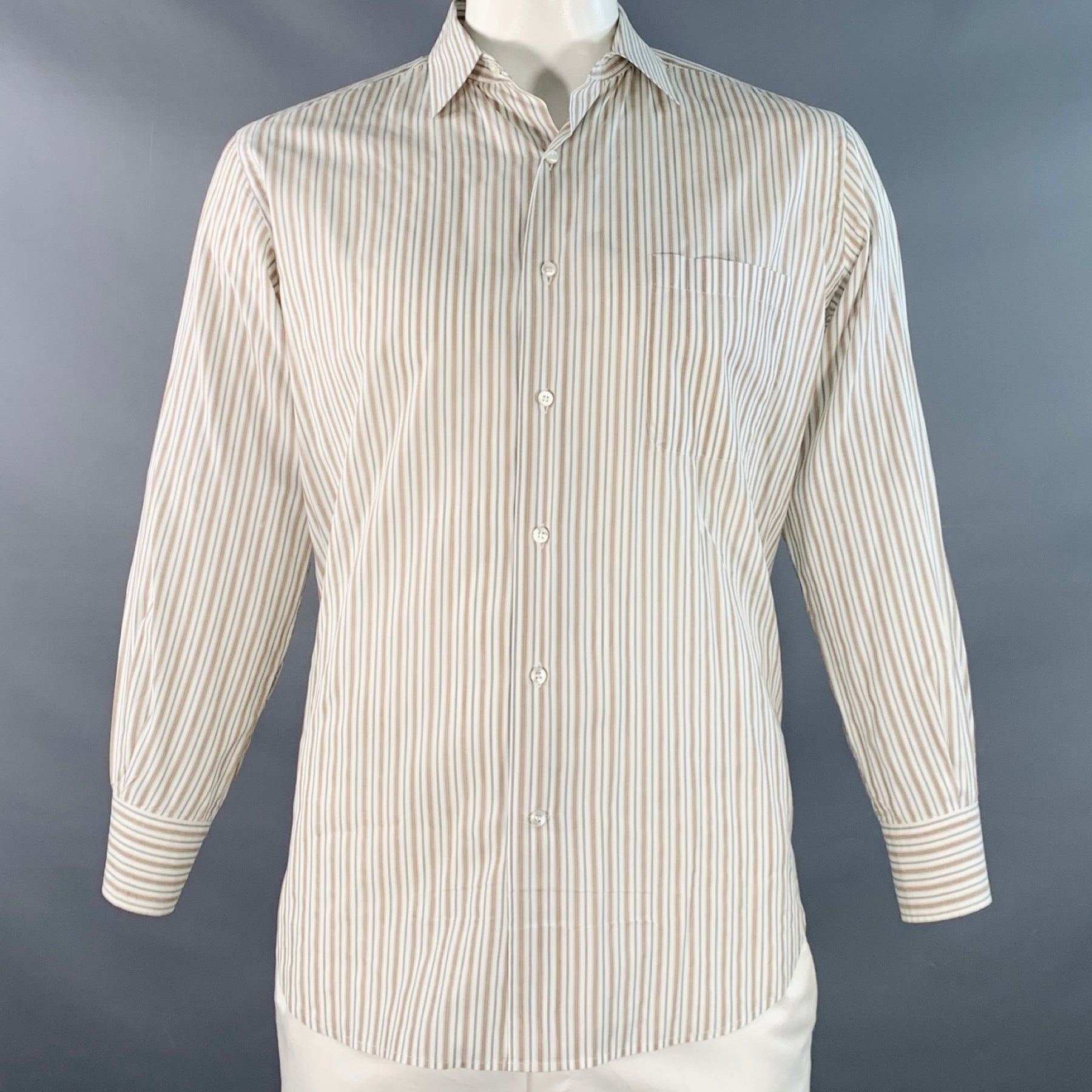LORO PIANA Size L White Tan Grey Stripe Cotton One Pocket Long Sleeve Shirt