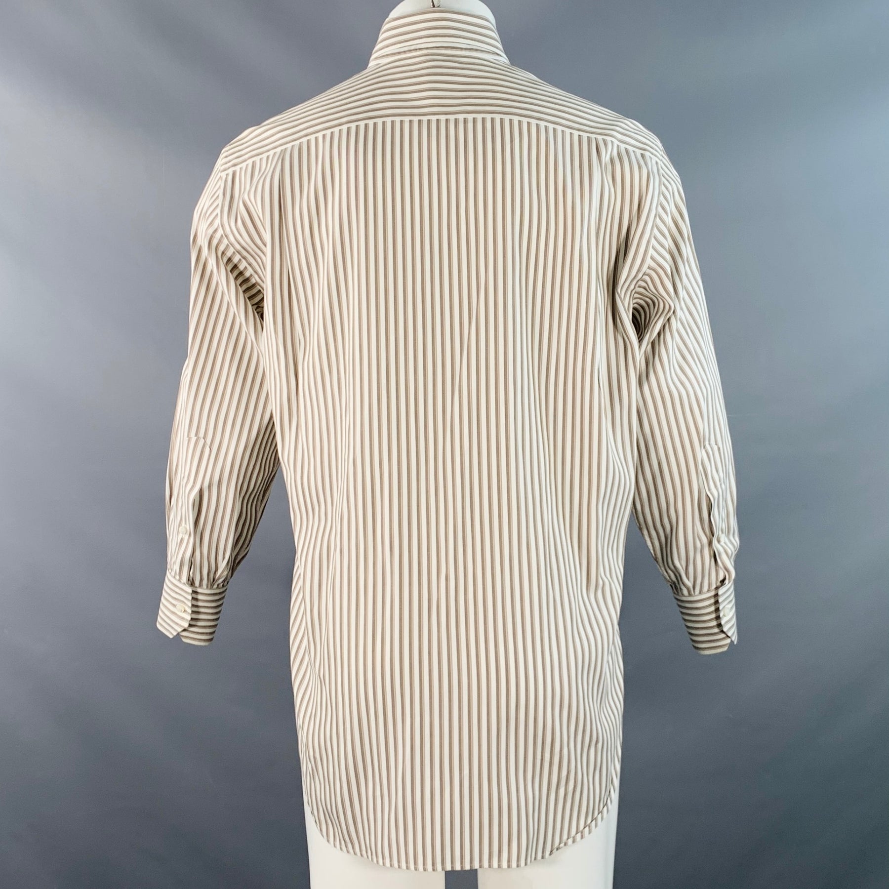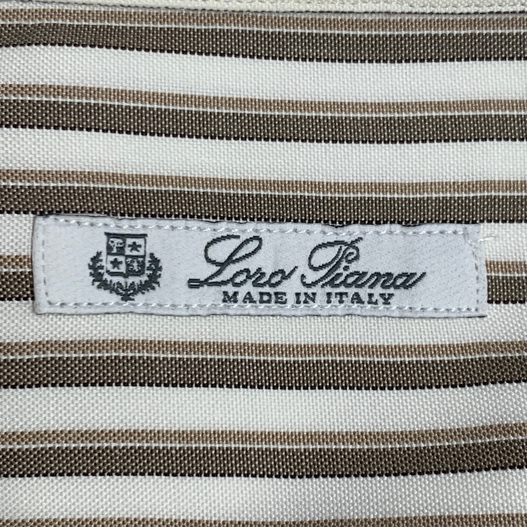 LORO PIANA Size M Brown Cream Stripe Cotton One Pocket Long Sleeve Shirt