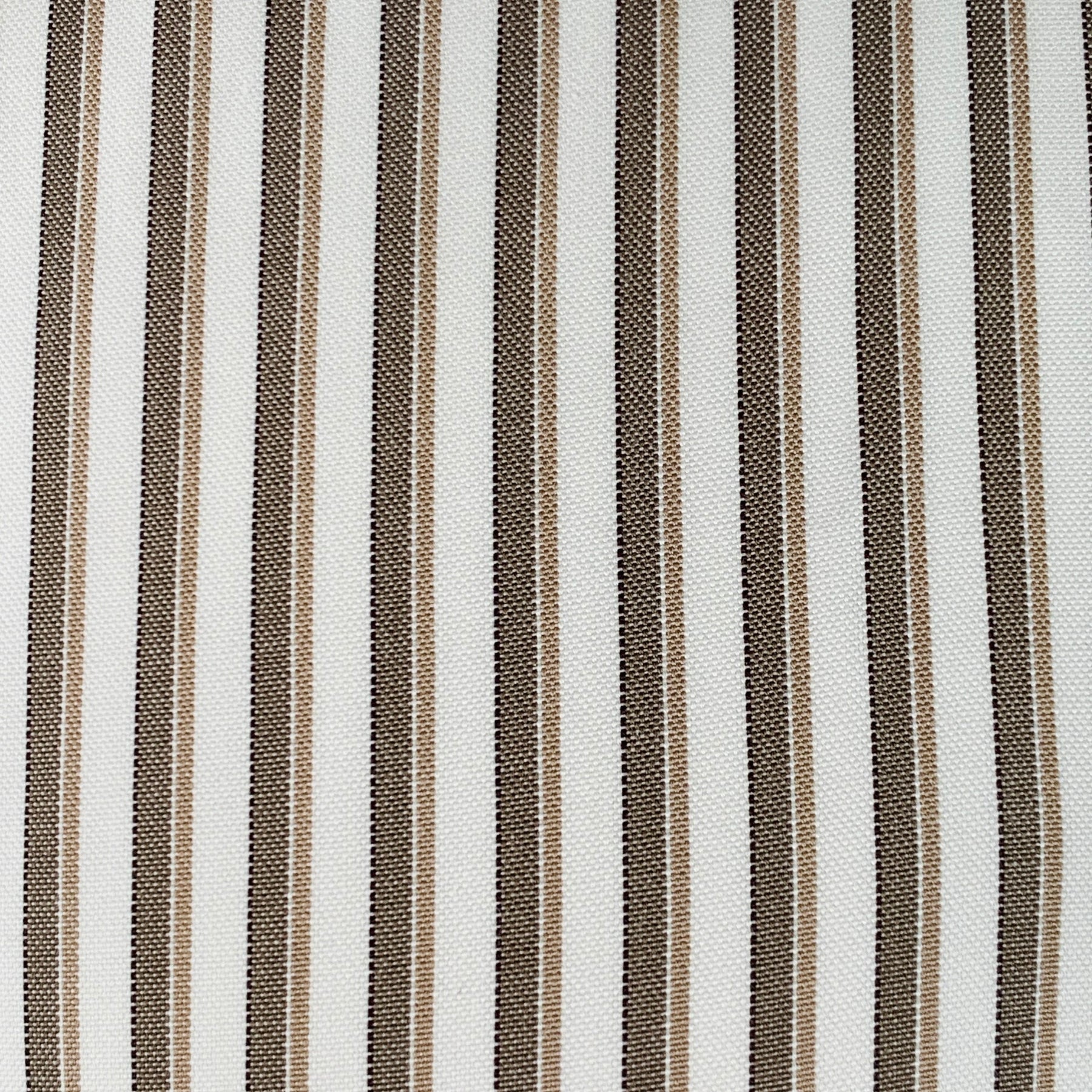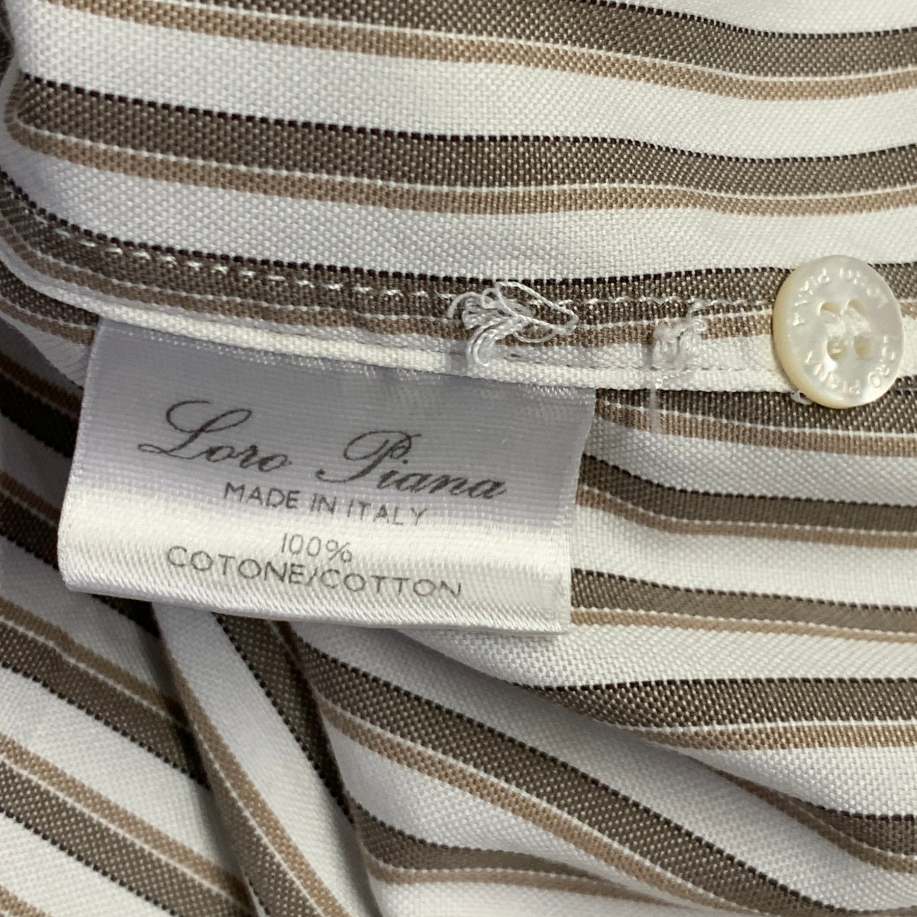 LORO PIANA long sleeve shirt in a brown and cream cotton woven fabric featuring a stripe pattern, button down collar, one pocket, and button closure. Made in Italy.