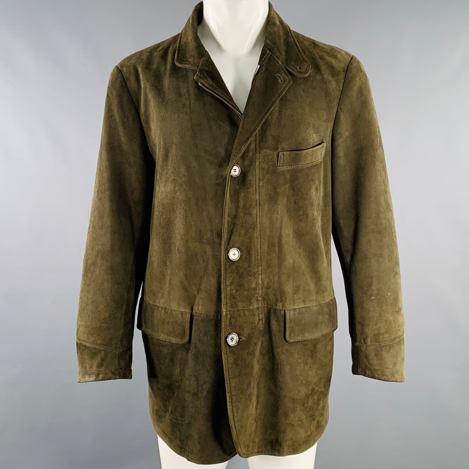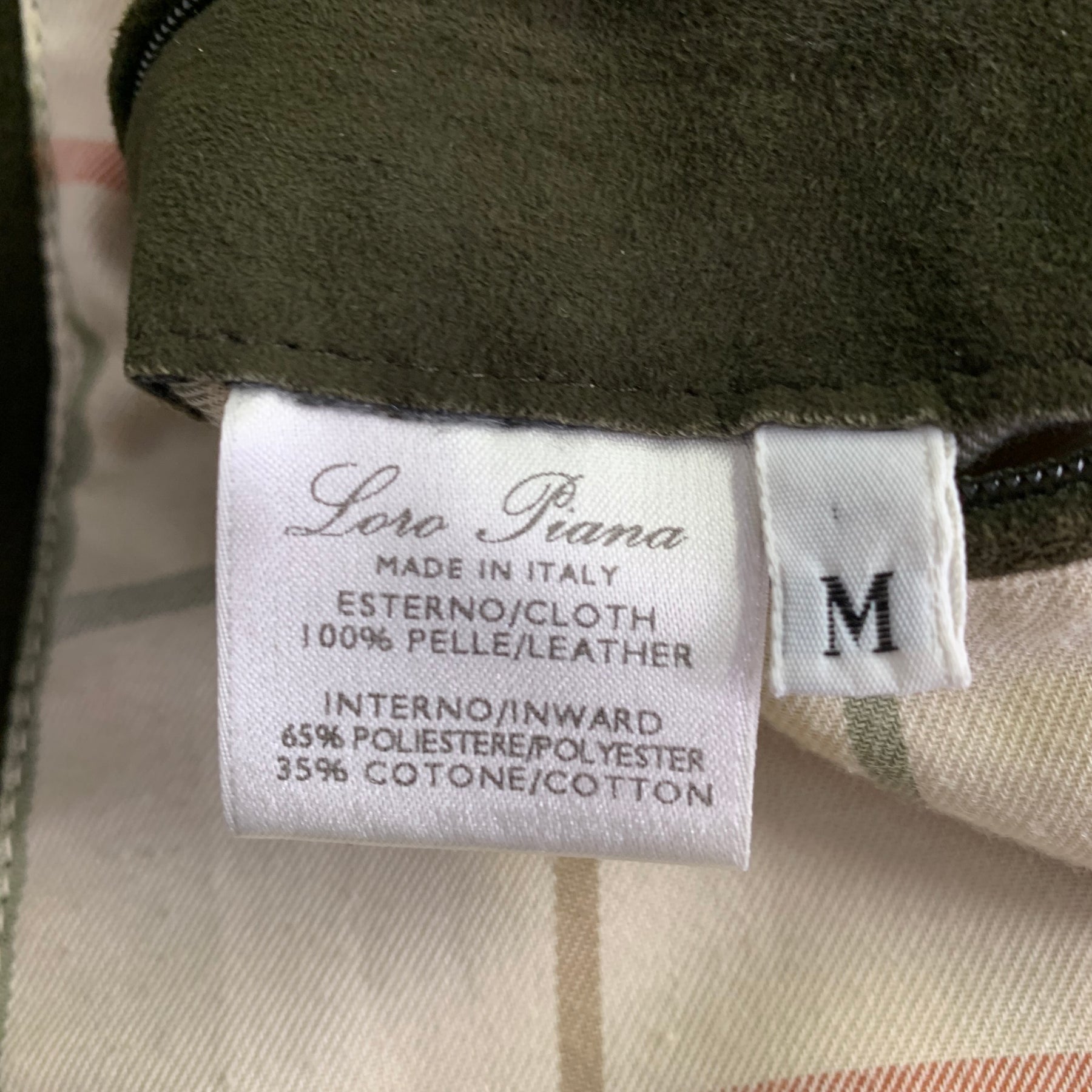 LORO PIANA Size M Green Olive Suede Zip Buttons Coat