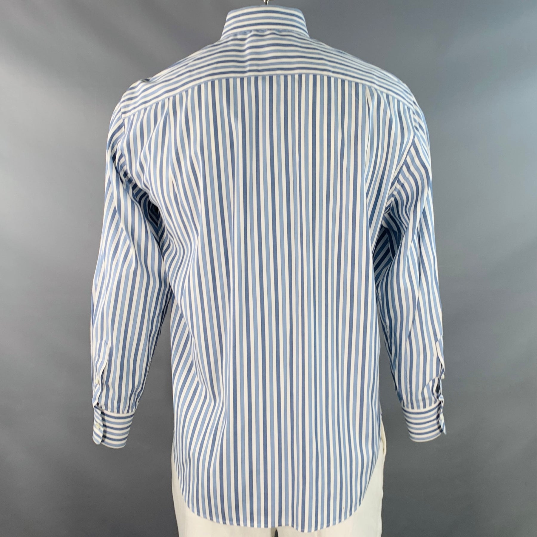 LORO PIANA Size XL Blue White Stripe Cotton One Pocket Long Sleeve Shirt