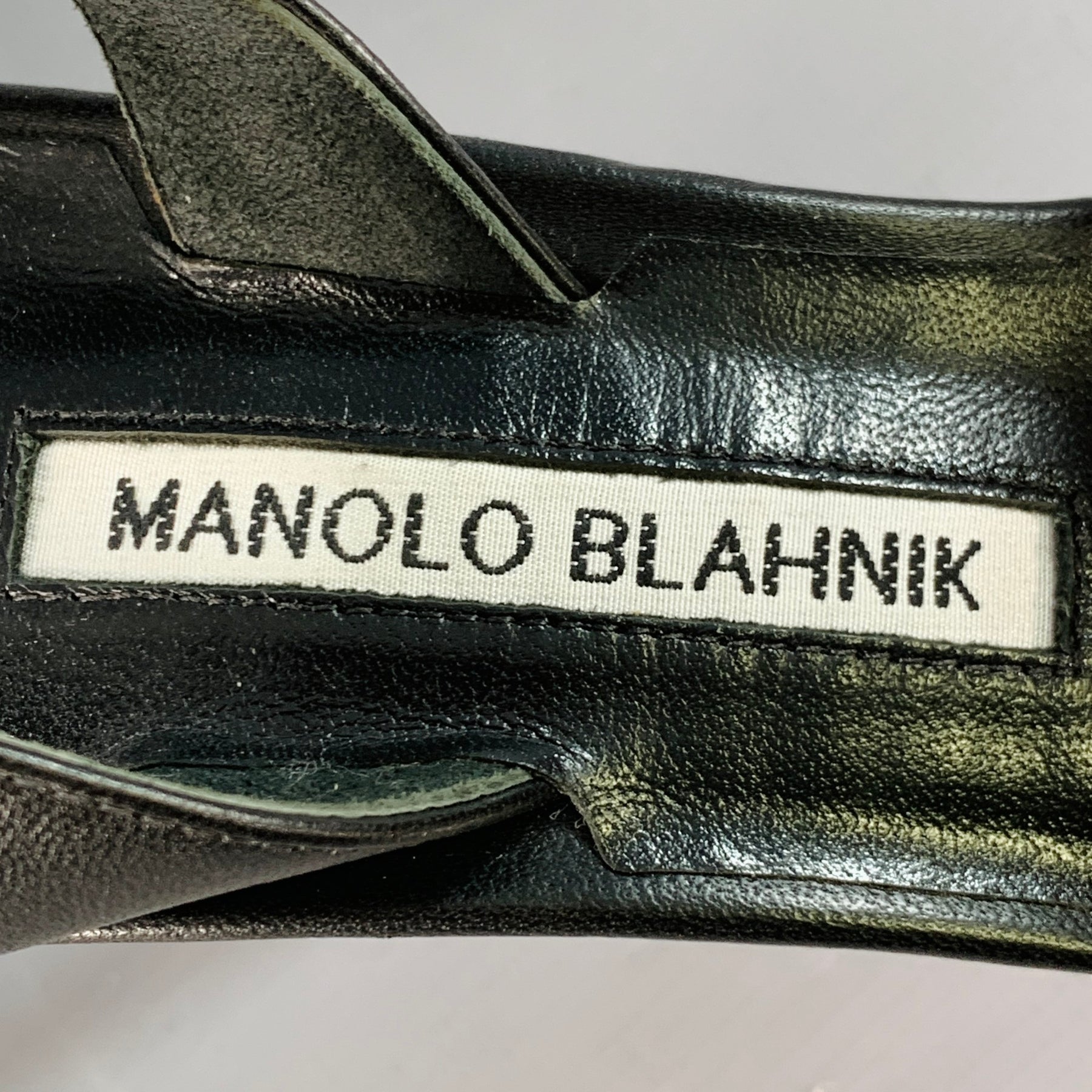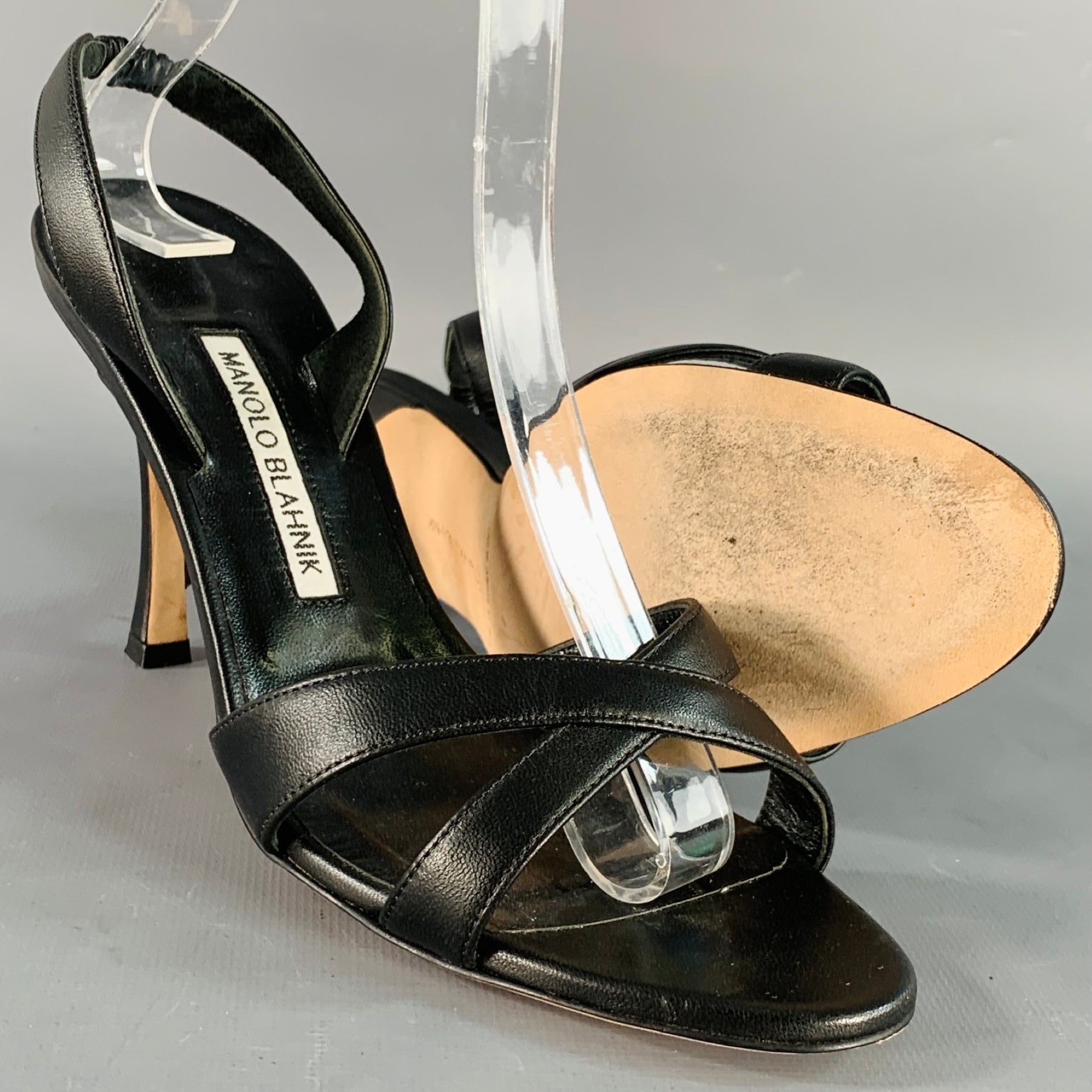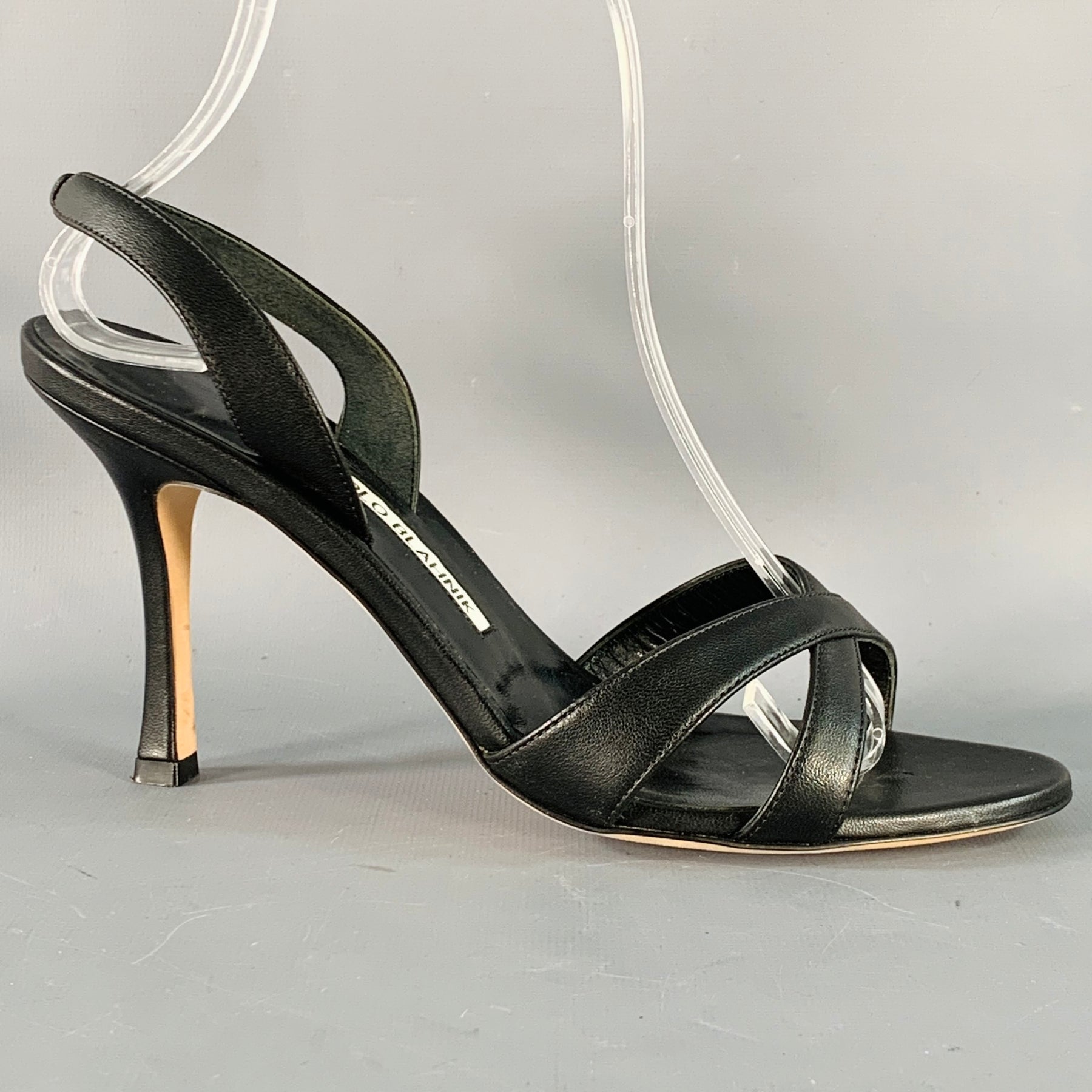 MANOLO BLAHNIK Size 8 Black Leather Strappy Slingback Sandals