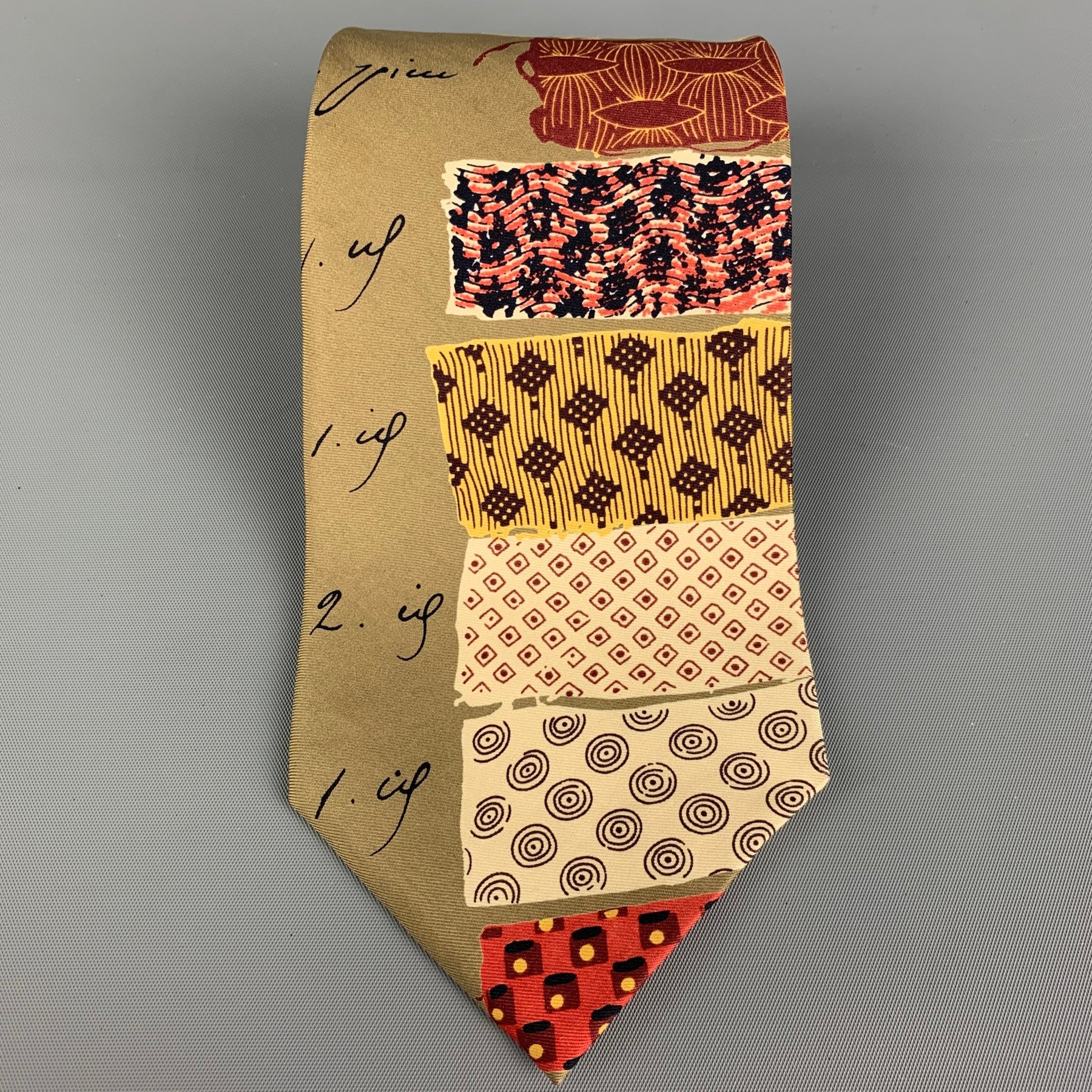 MATSUDA Khaki Abstract Print Silk Tie