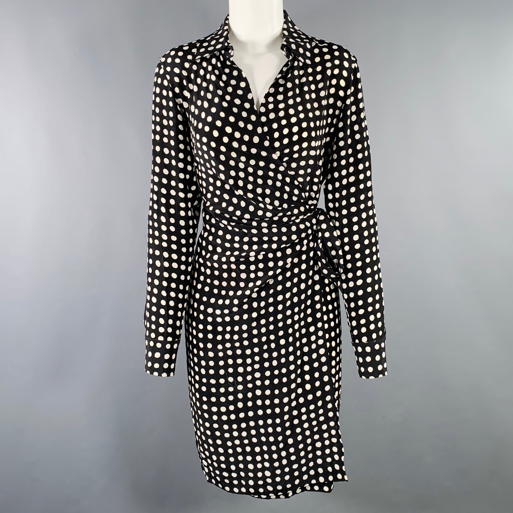 MAX MARA Size 4 Black White Silk Polka Dot Wrap Dress