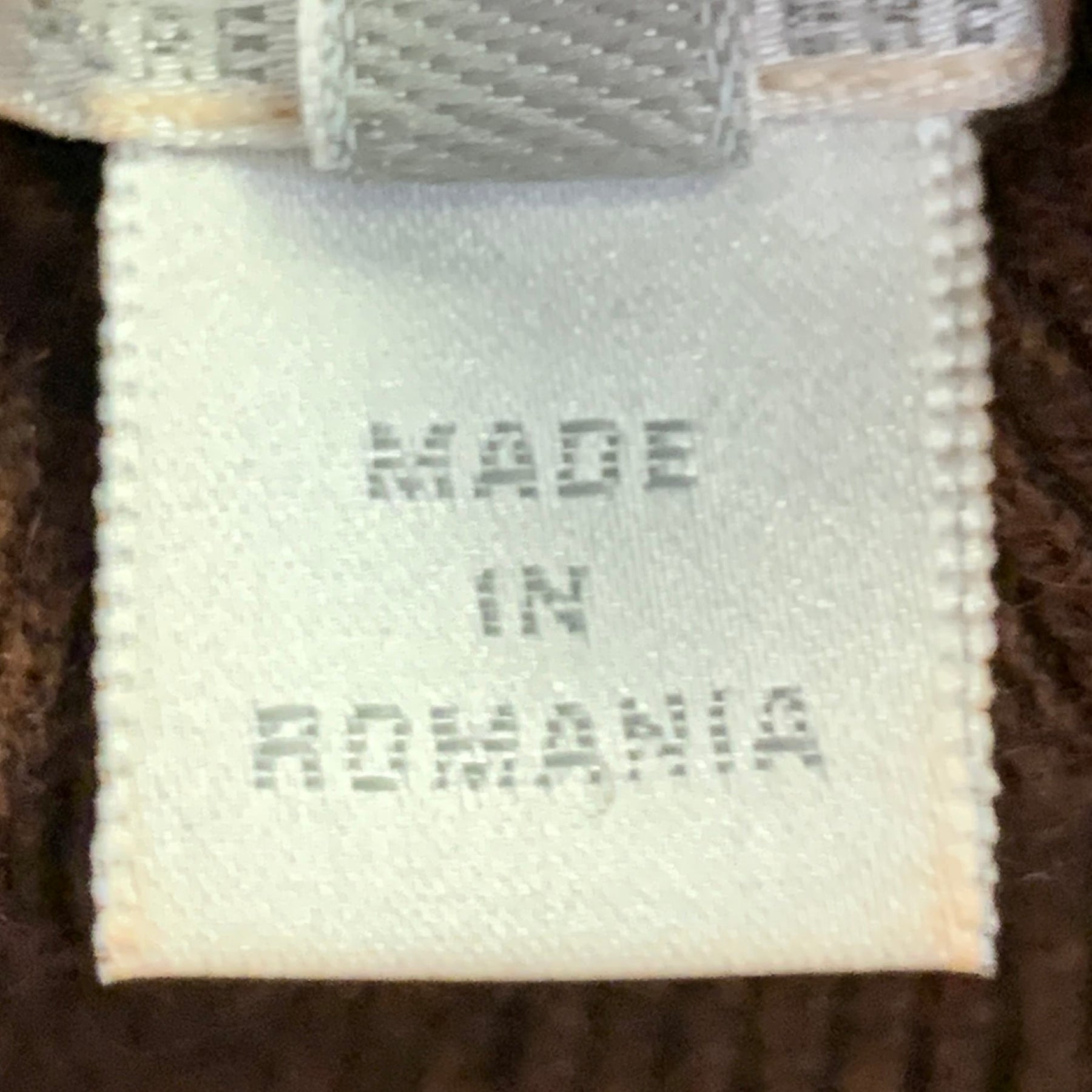 MAX MARA pullover in a brown cashmere knit featuring 3/4 sleeves and turtleneck. Made in Romania.
