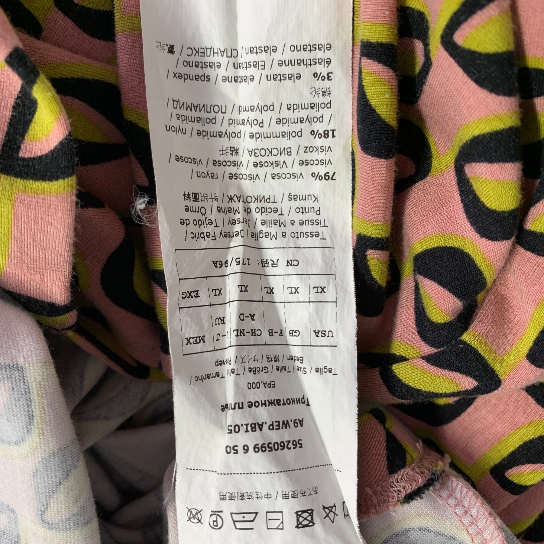 MAX MARA Size XL Pink Black Yellow Viscose Blend Abstract Wrap Dress