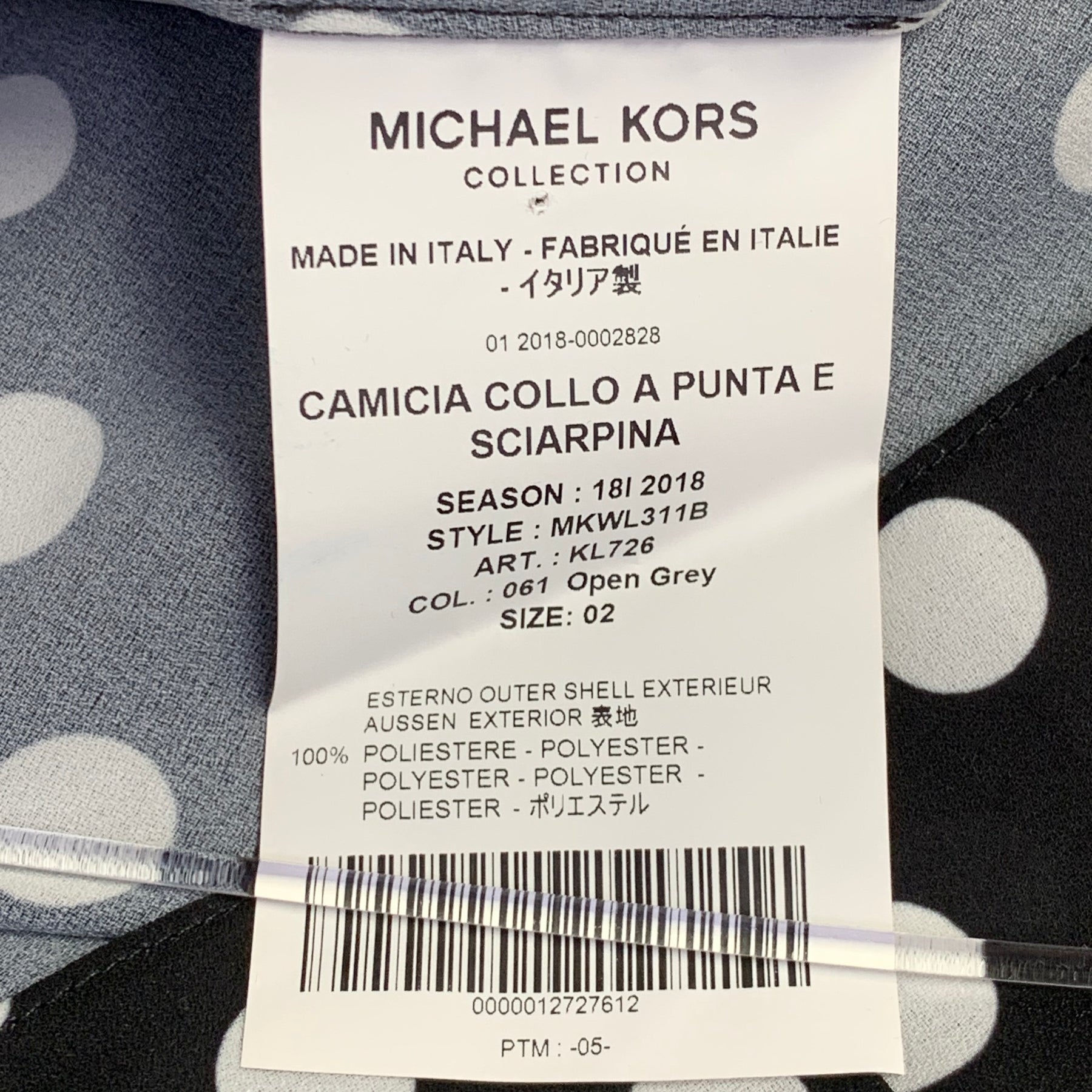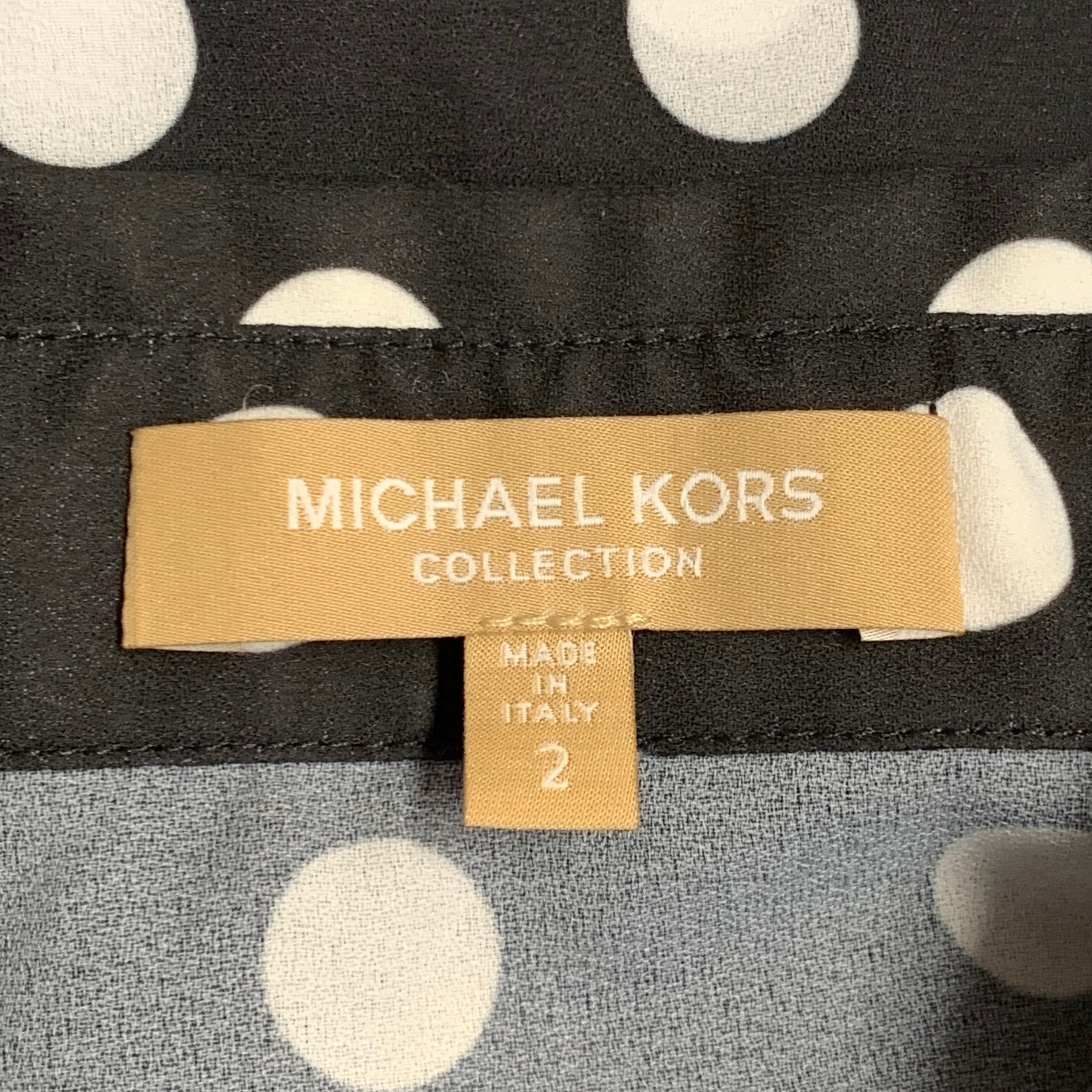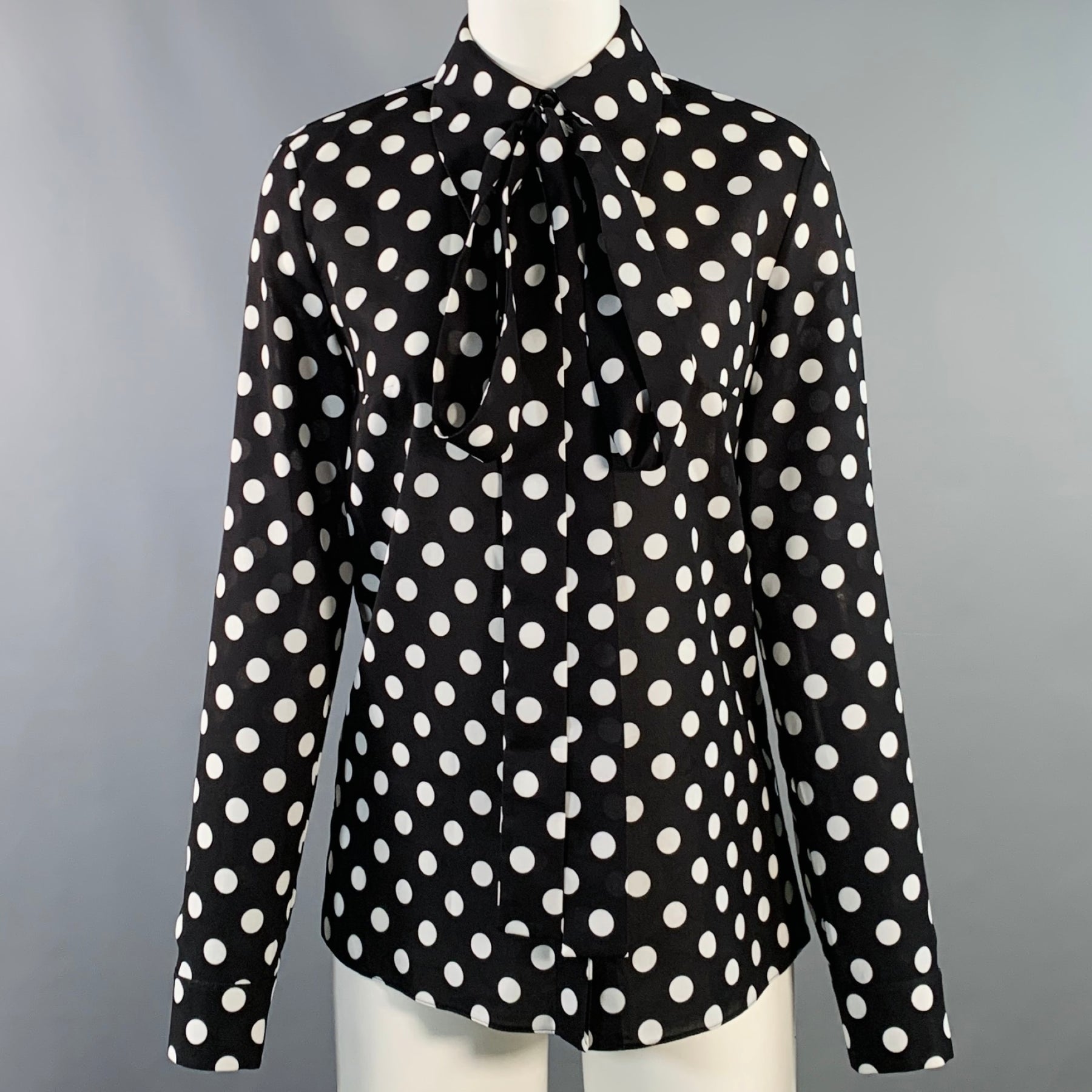 MICHAEL KORS COLLECTION Size 2 Black White Polyester Polka Dot Bow Blouse