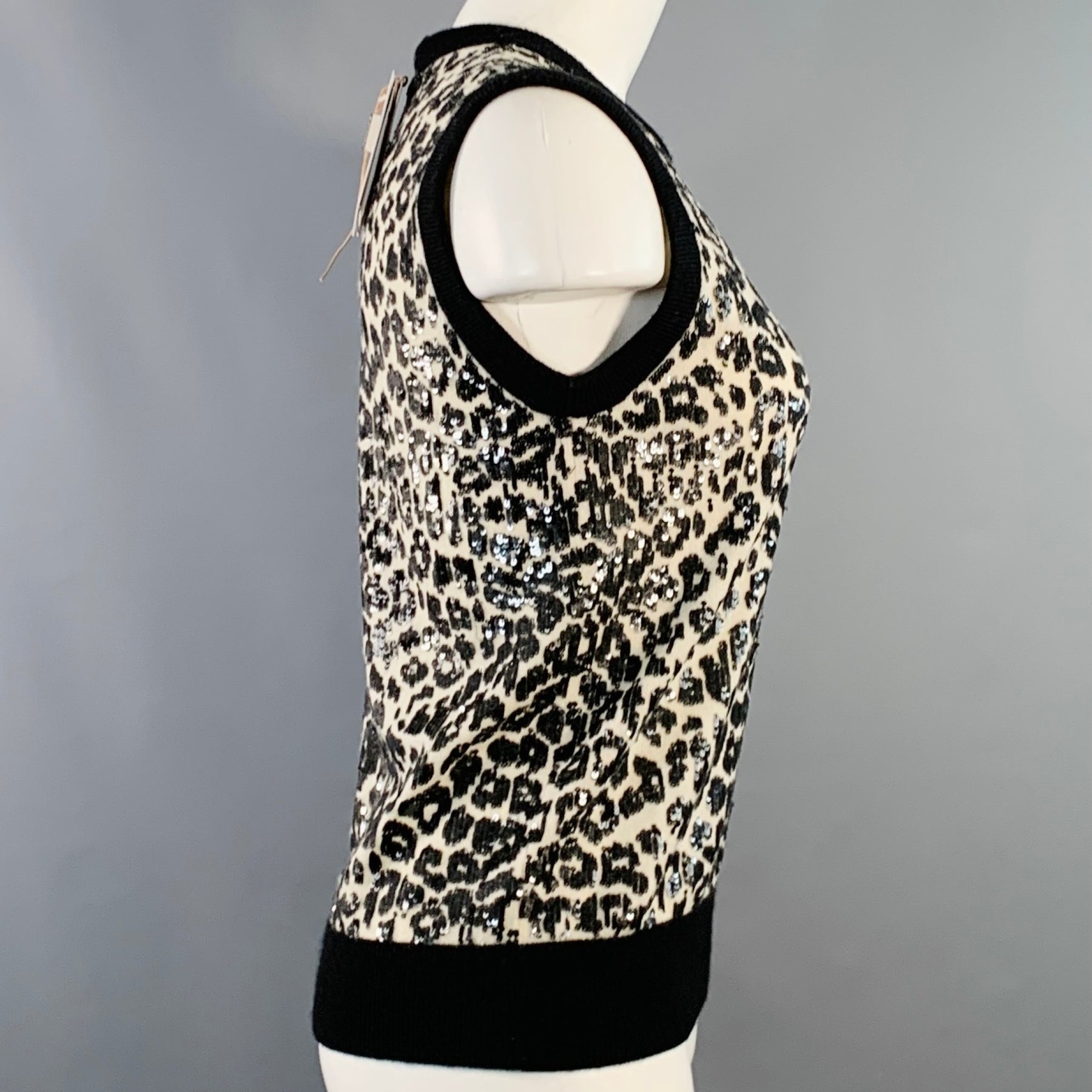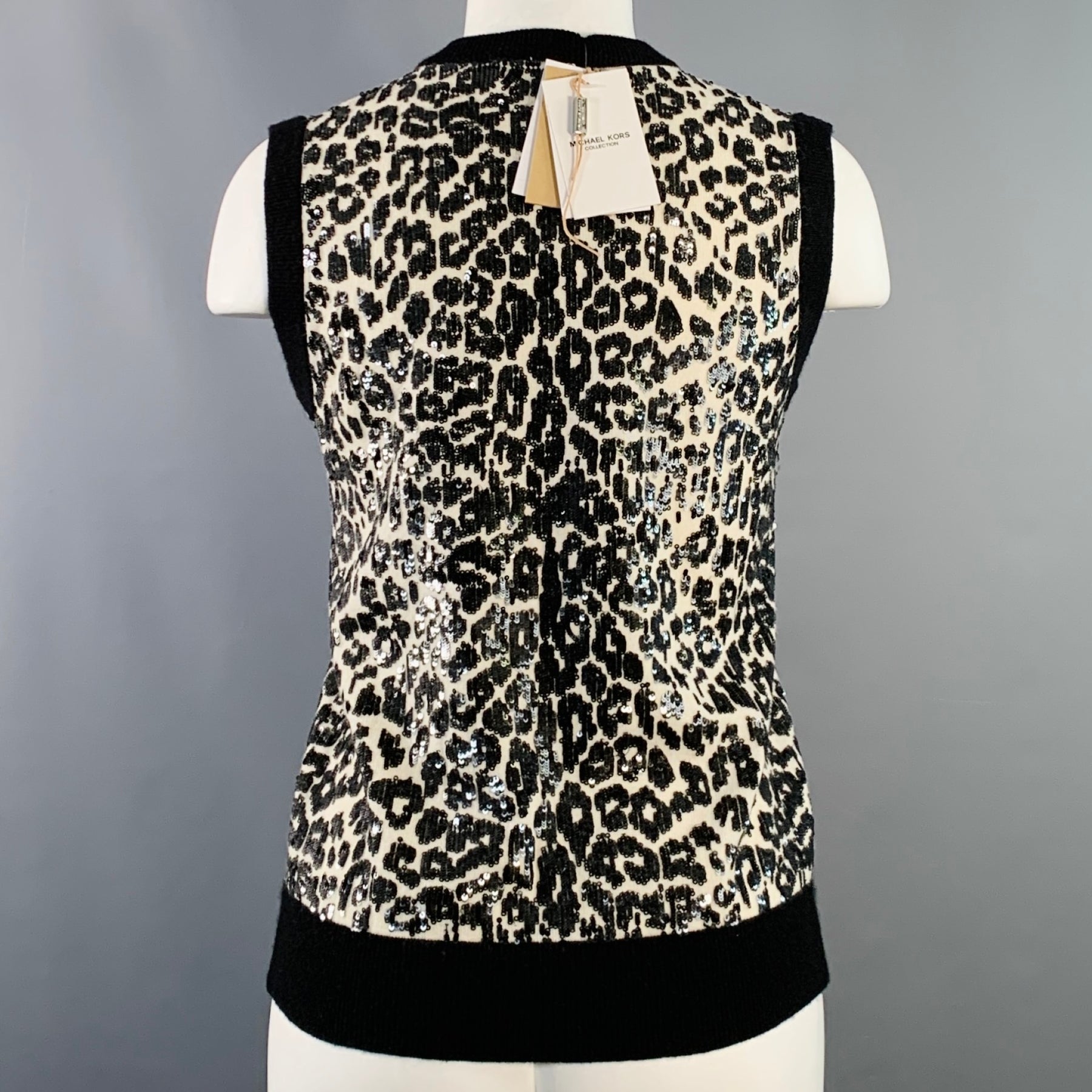 MICHAEL KORS COLLECTION Size S Black White Cashmere Sequined Animal Print Dress Top