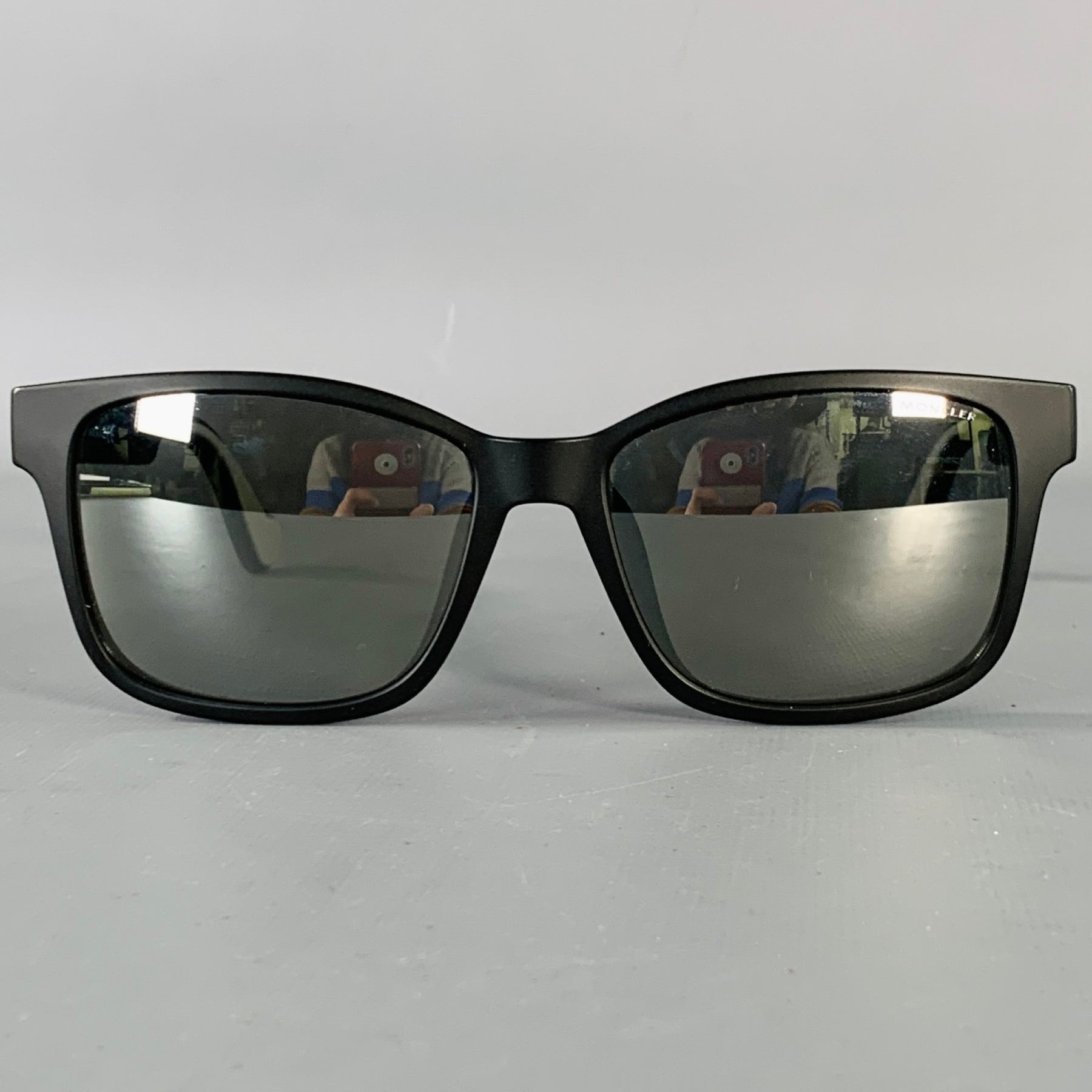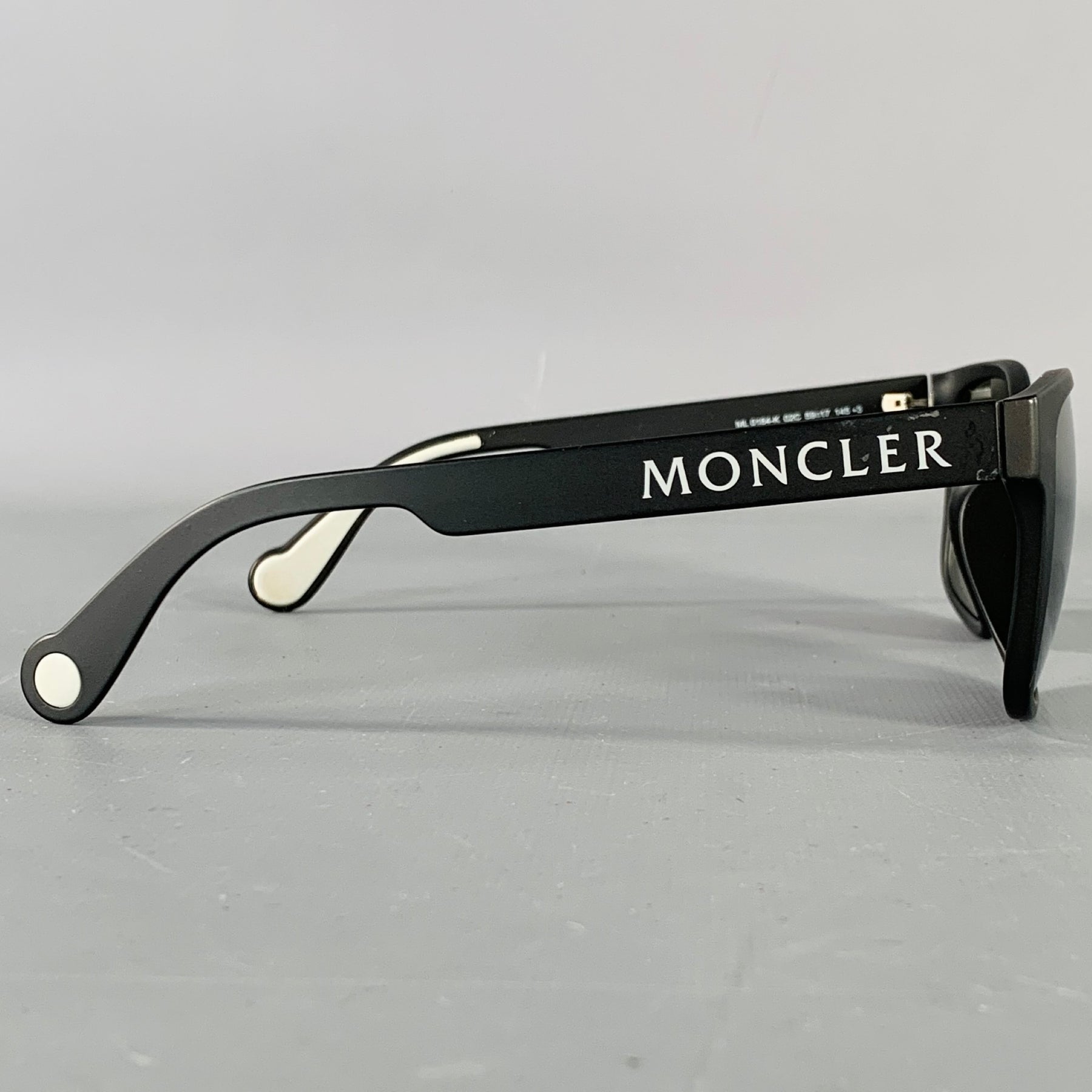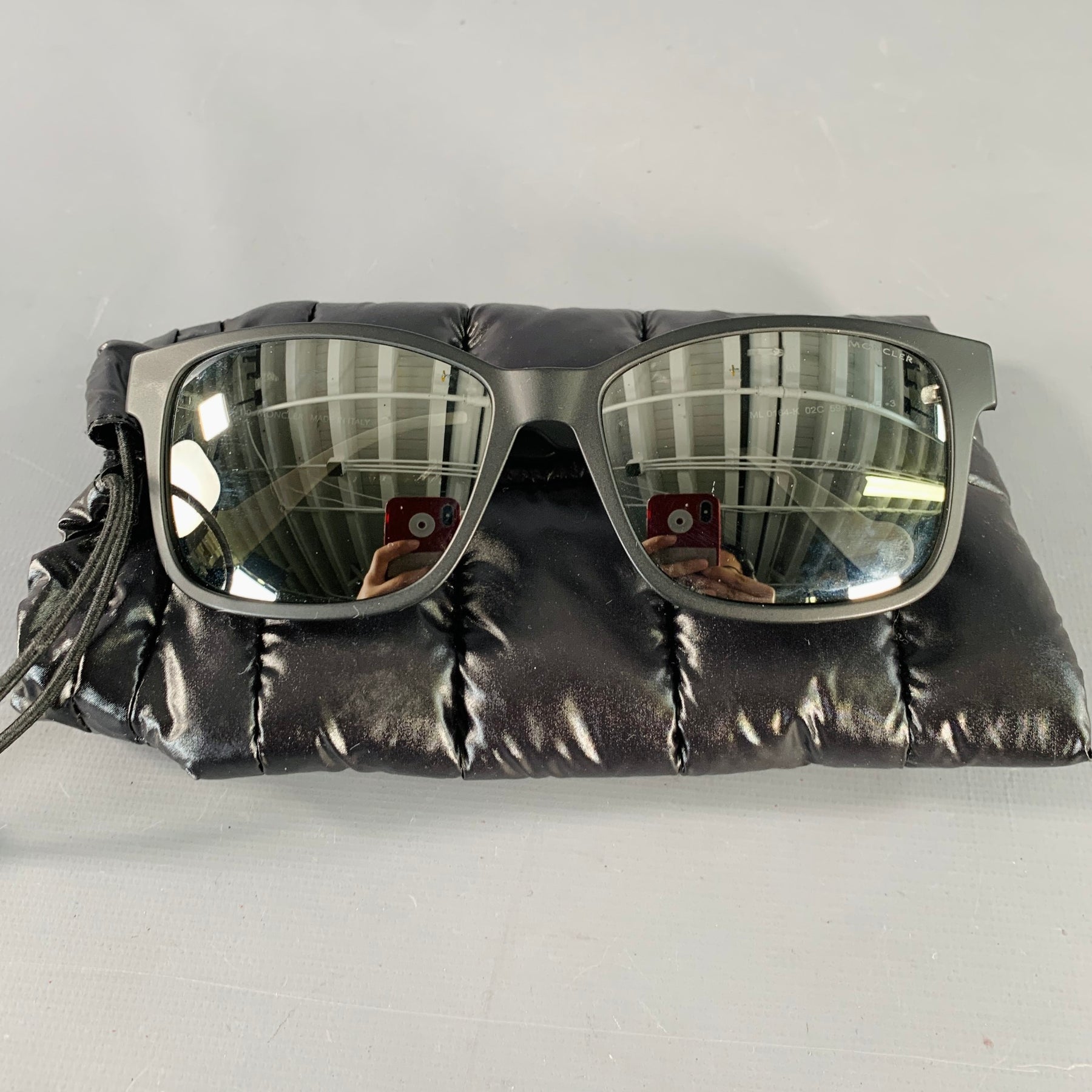 MONCLER sunglasses in a black matte acetate featuring a square shape and mirrored lenses. Comes with quilted drawstring pouch.