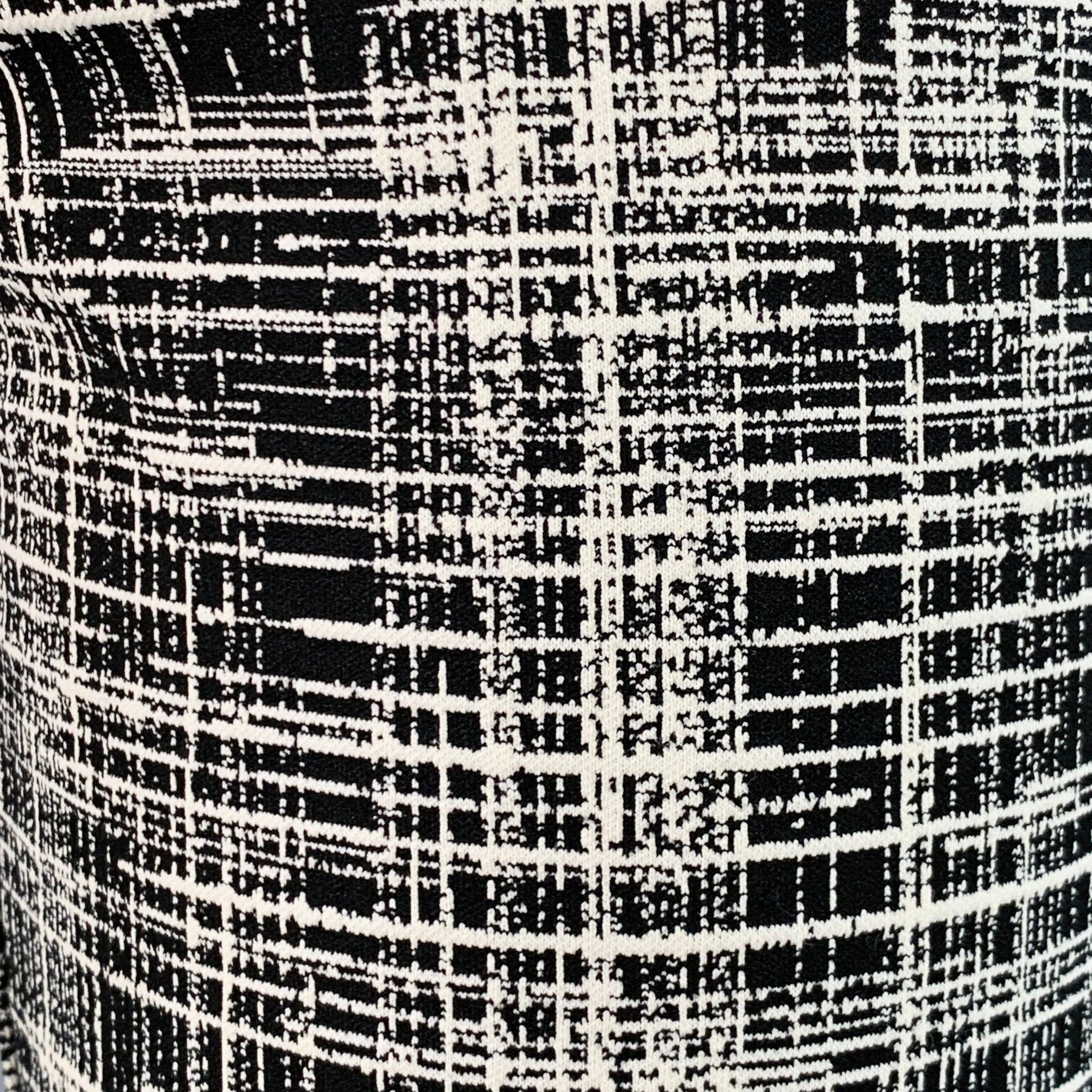 BOUTIQUE MOSCHINO jeans in a stretchy black and white rayon fabric featuring a crosshatch pattern, five pockets, skinny fit, and zip fly closure.