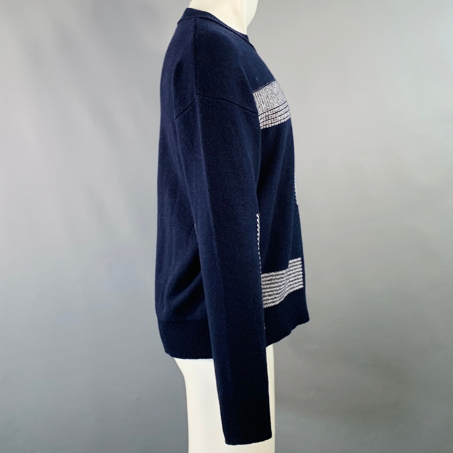 MR. PORTER Size M Navy White Patchwork Cashmere Cotton Blend Oversized Crew Neck Sweater
