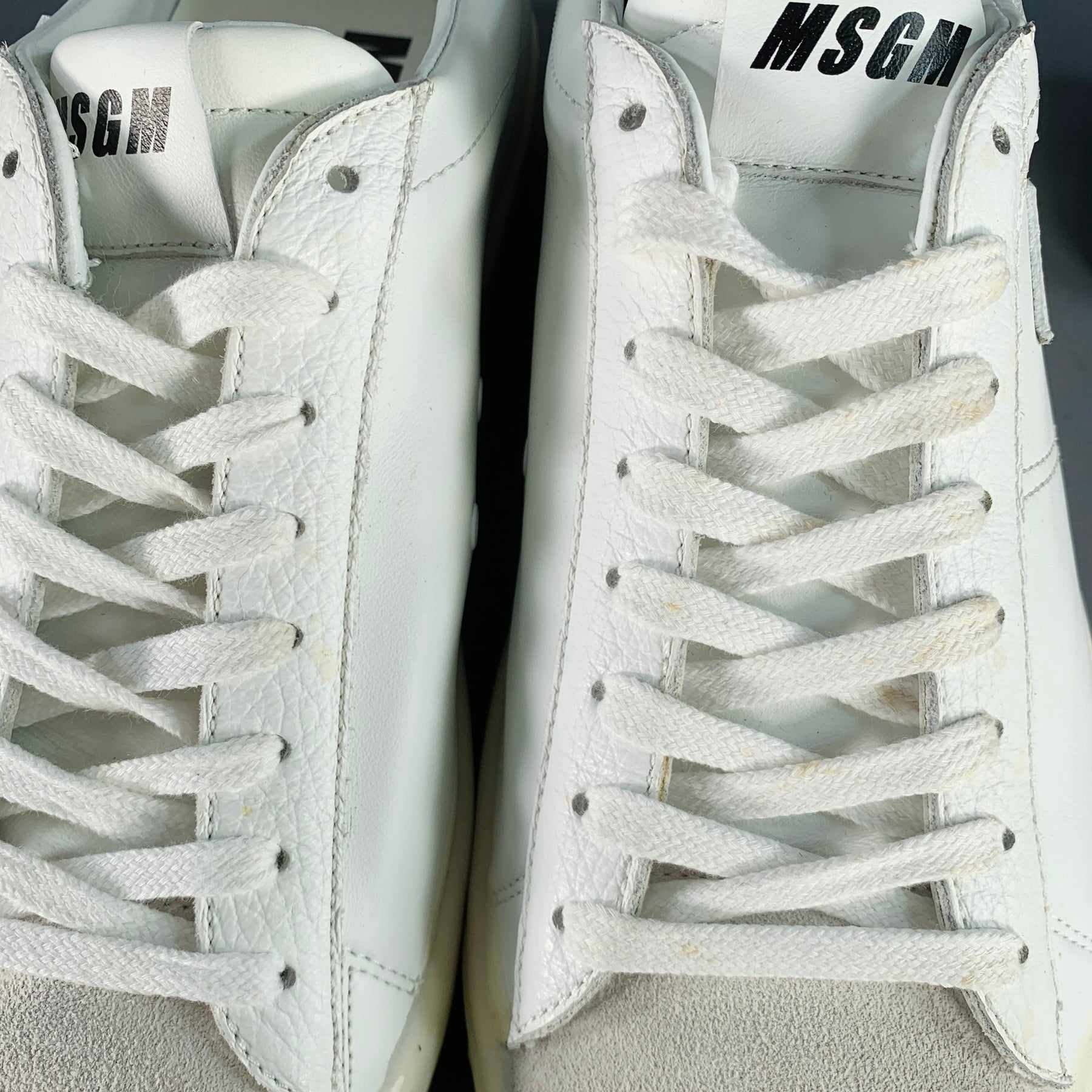 MSGM Size 8 White Leather Suede Trim Lace-Up Low Top Sneakers