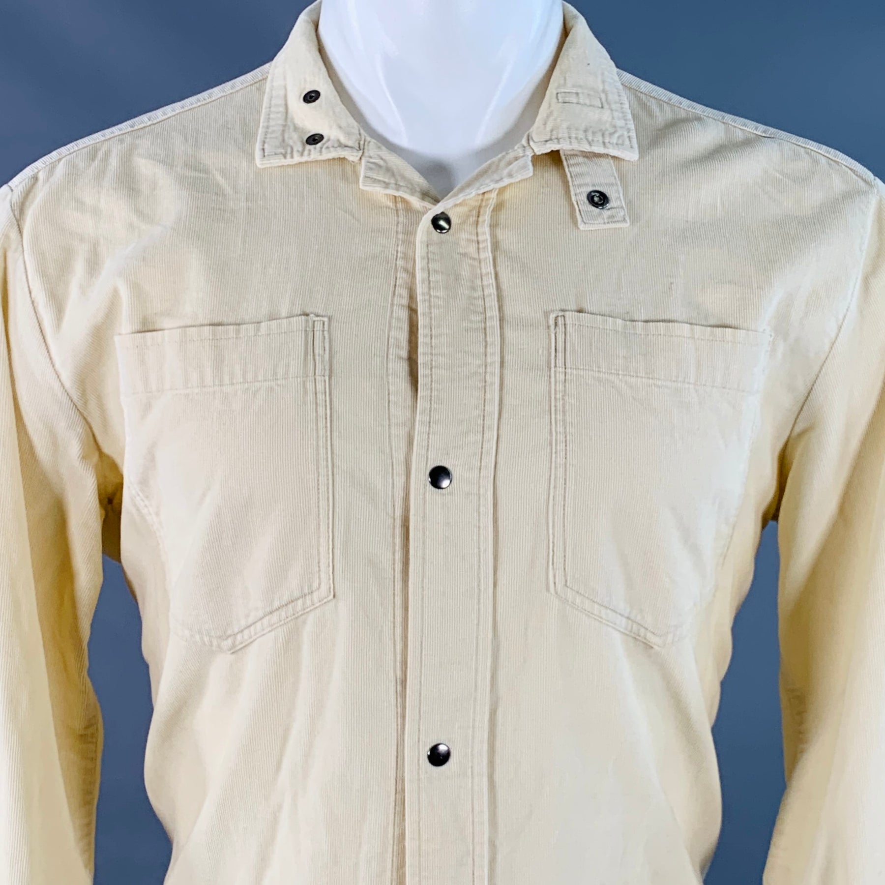 NICE COLLECTIVE Size M Cream Corduroy Cotton Two Pockets Snaps Long Sleeve Shirt