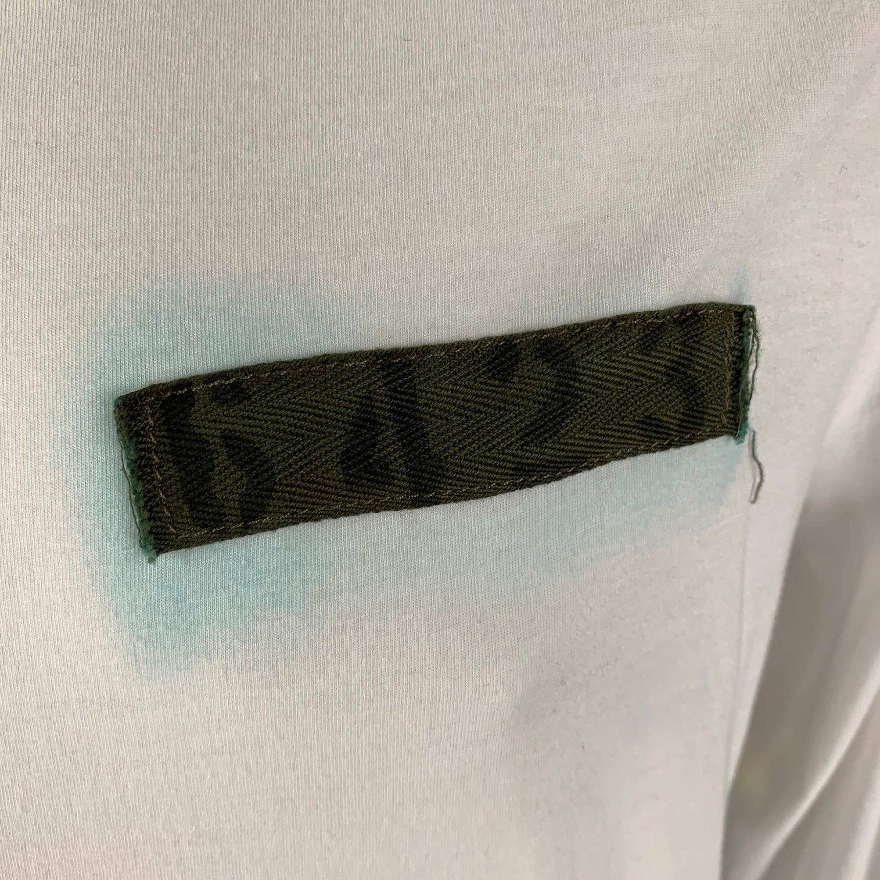 NICE COLLECTIVE long sleeve shirt comes in white cotton jersey with a crew neck featuring patch detail, thumb sleeve and back inner pocket. Made in USA.