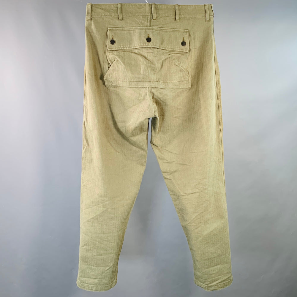 NIGEL CABOURN Size 34 Green Olive Twill Cotton Linen Button Fly Casual Pants
