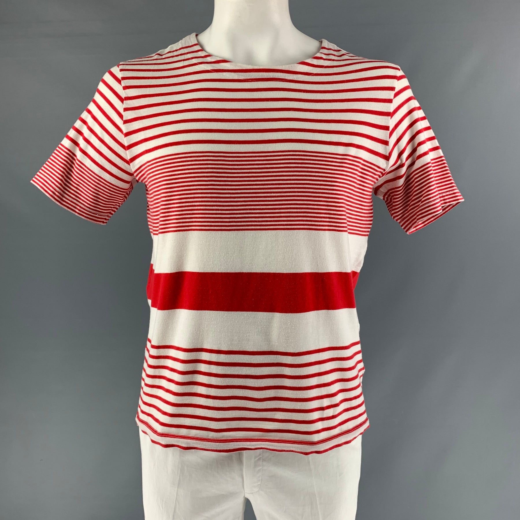 OPENING CEREMONY Size L Red White Stripe Cotton Crew-Neck T-shirt