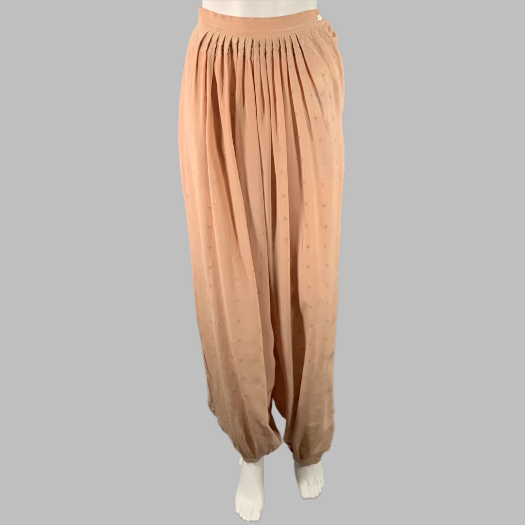 OPENING CEREMONY casual pants in a pink silk featuring an embroidered design, harem style, and single button closure.