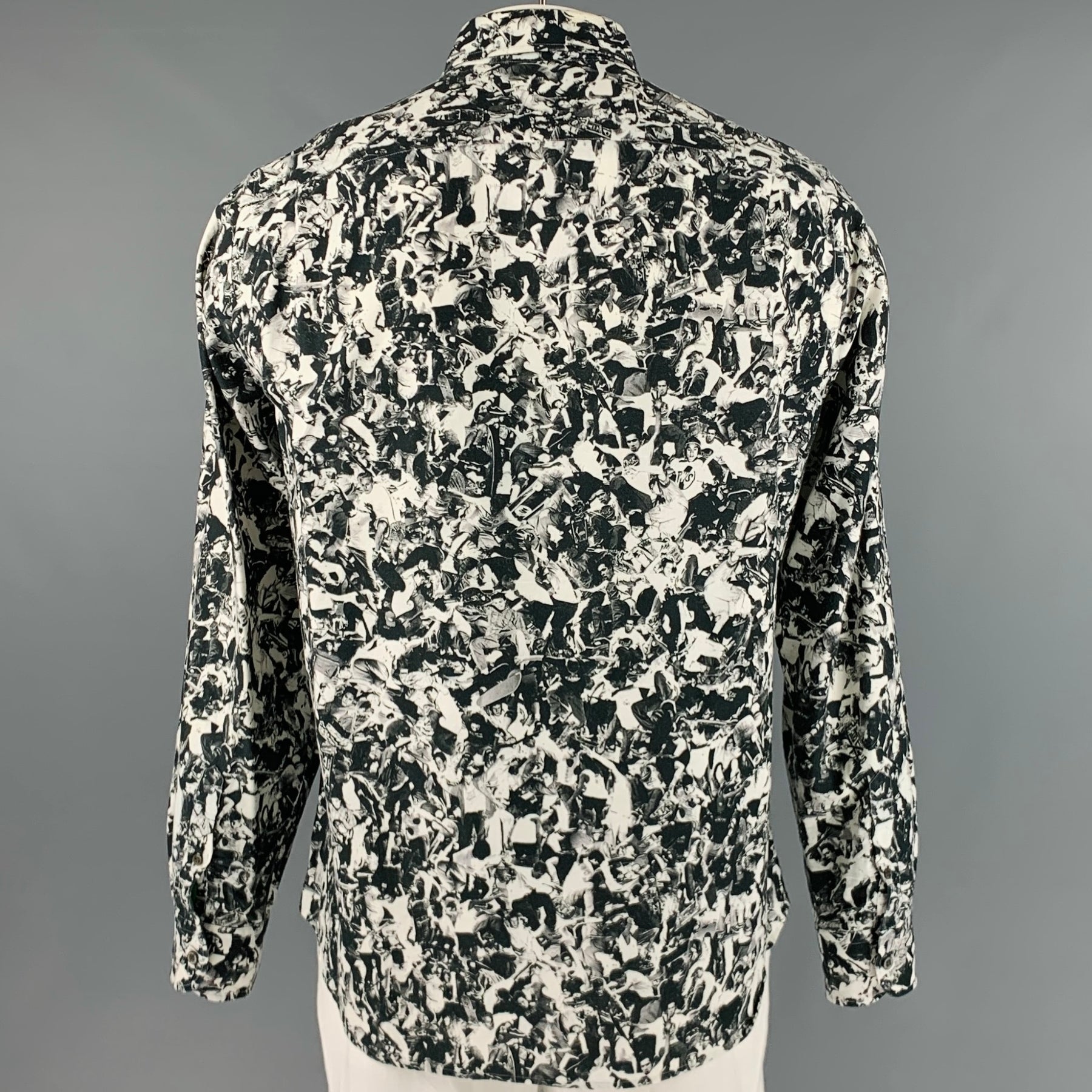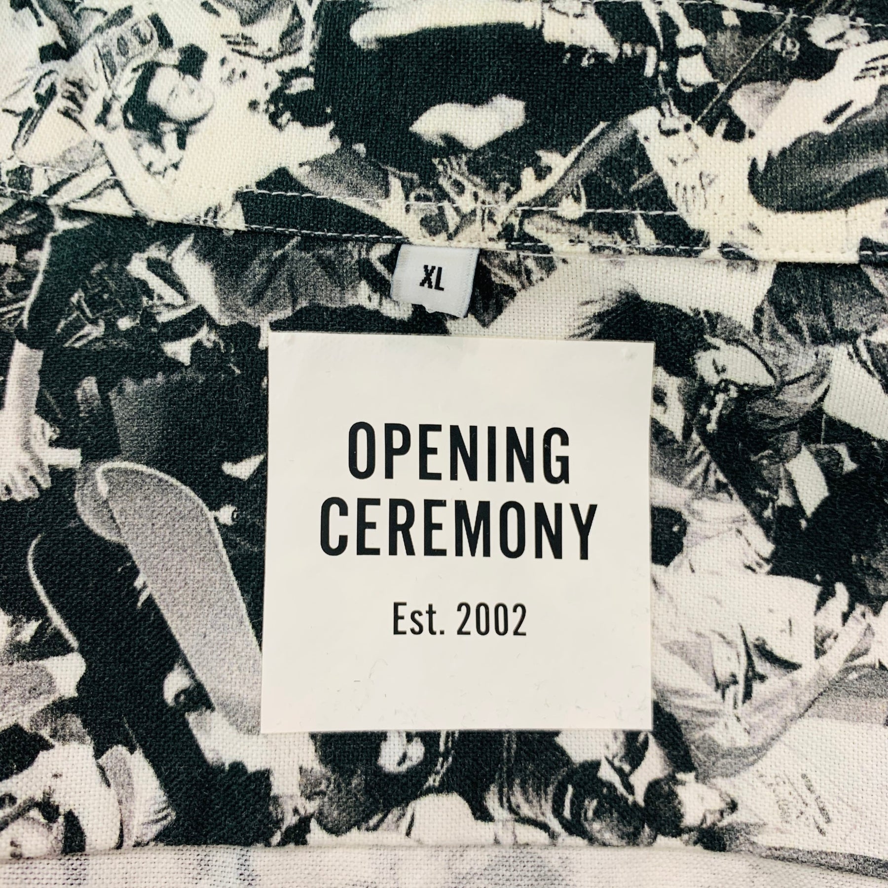 OPENING CEREMONY Size XL Black White Print Cotton Button Down Long Sleeve Shirt