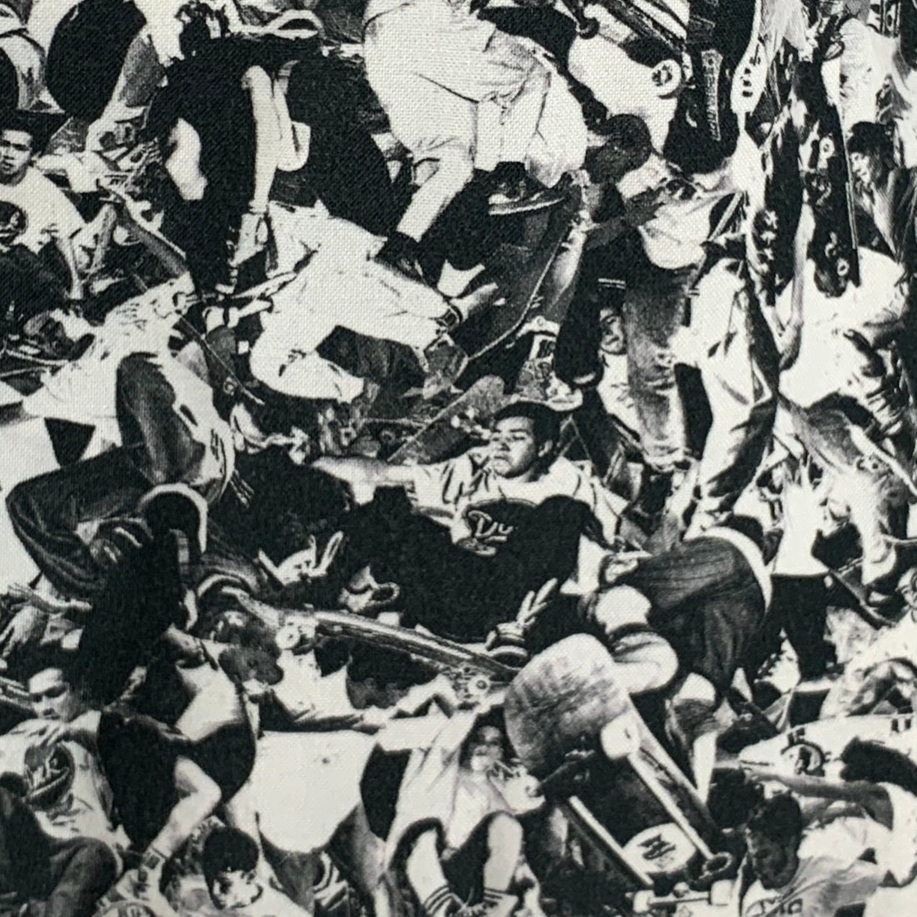 OPENING CEREMONY long sleeve shirt in a black and white cotton fabric featuring skaters print, button down collar, one pocket, and button closure. Made in Portugal.