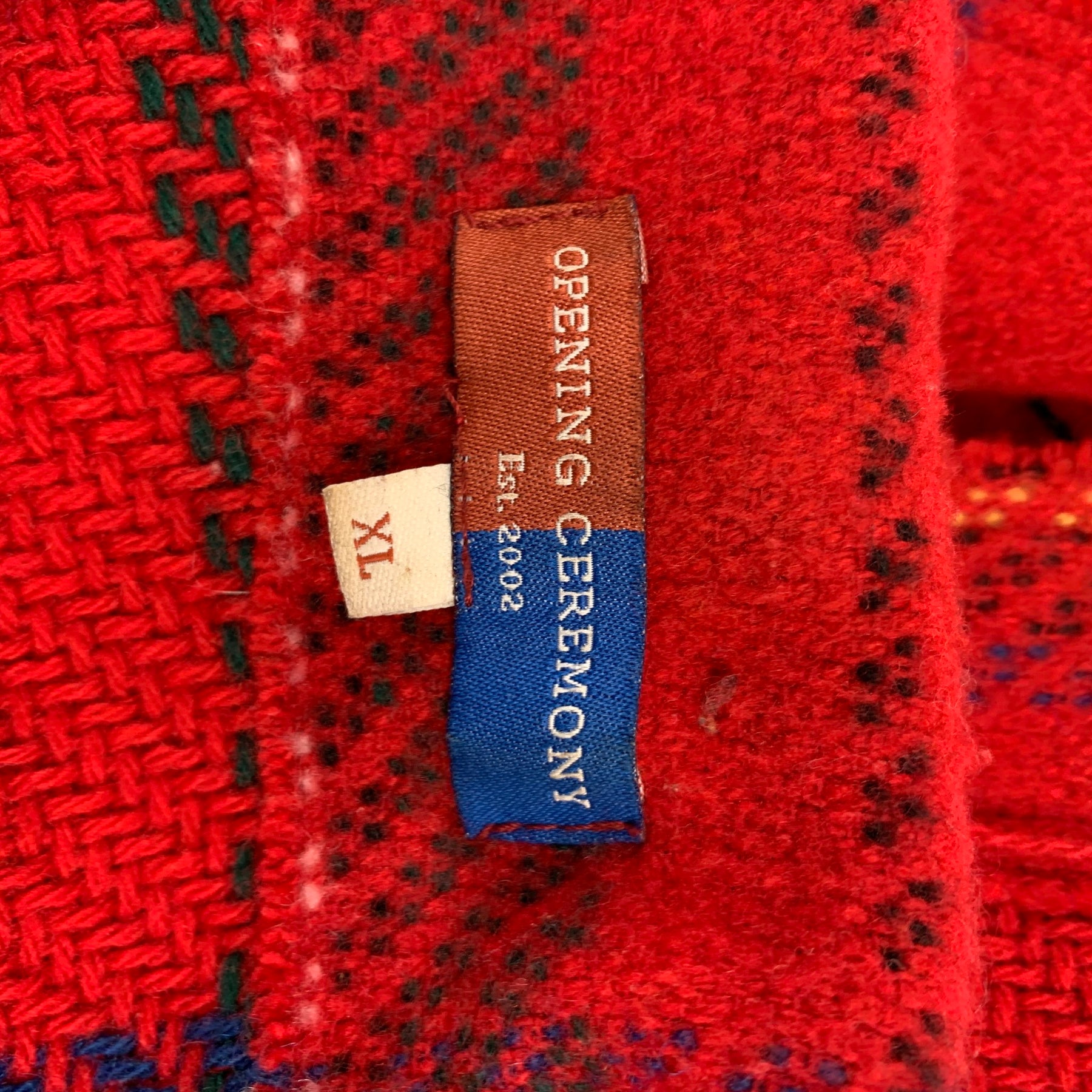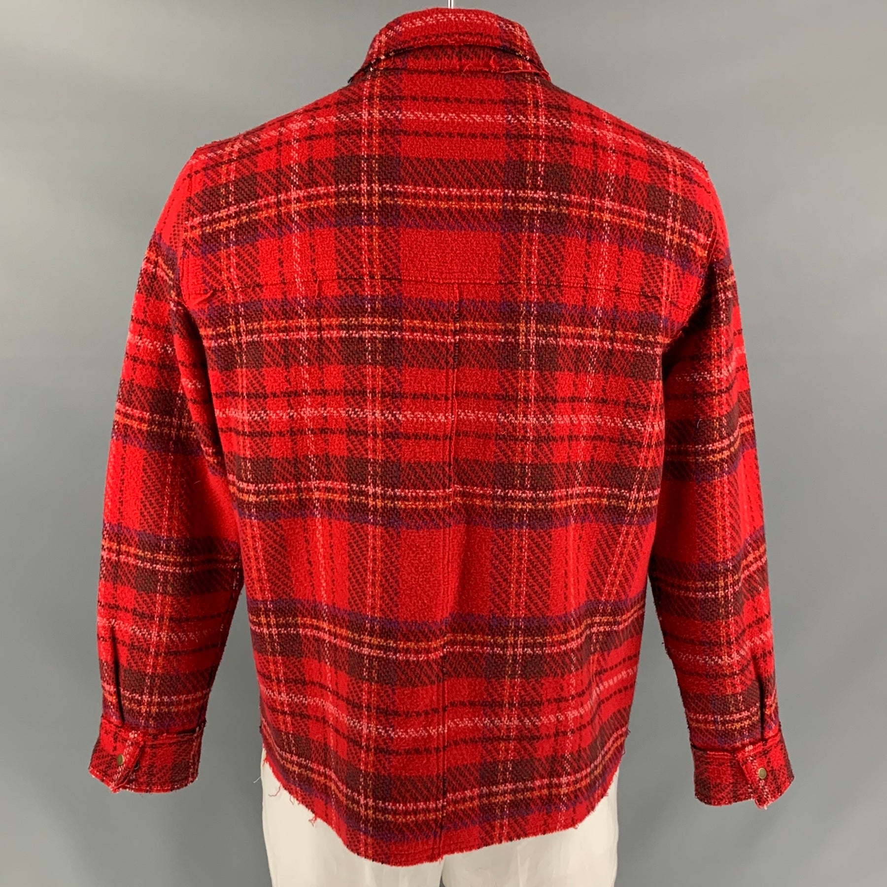 OPENING CEREMONY Size XL Red & Black Plaid Wool Snaps Long Sleeve Shirt Jacket