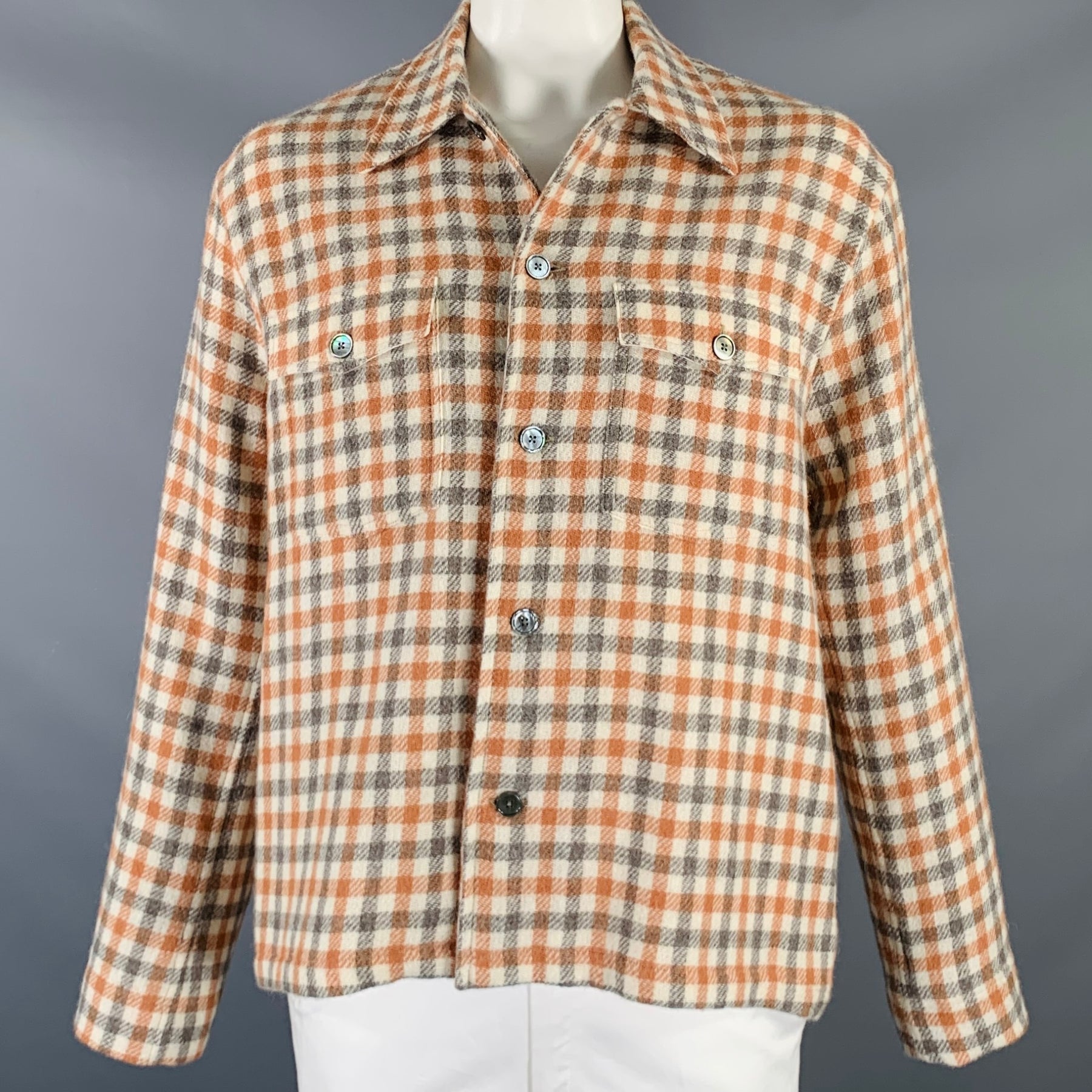 OUR LEGACY Size L Cream Orange Grey Checkered Patch Pocket Jacket