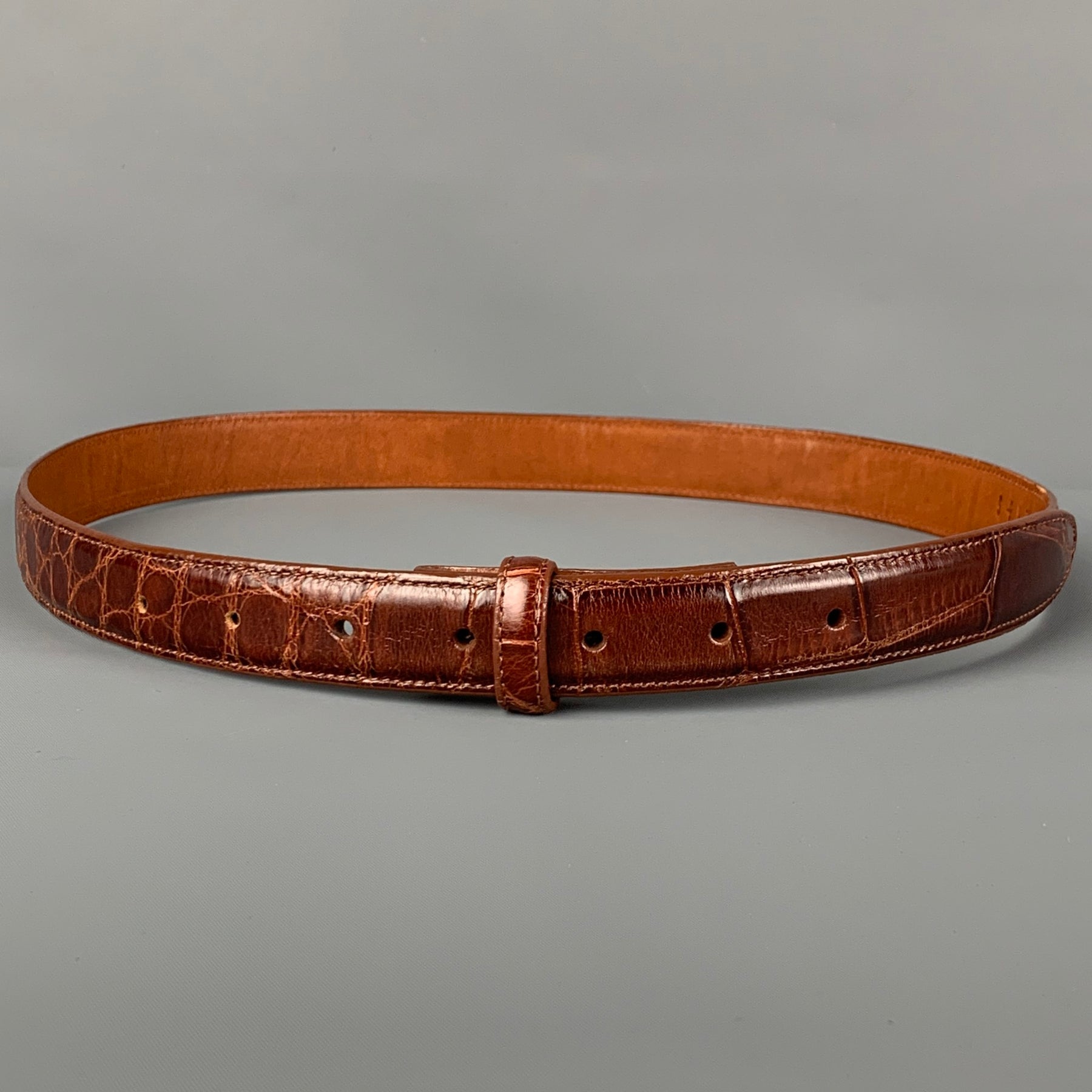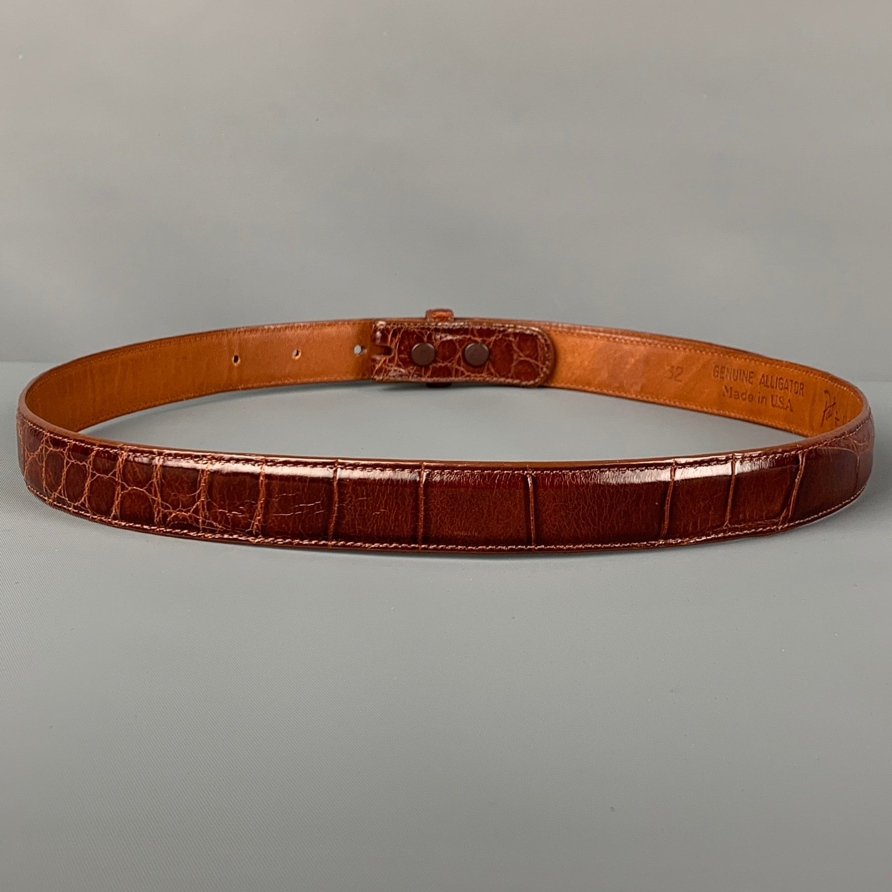 PAT AREIAS Size 32 Brown Textured Alligator Leather Belt Strap