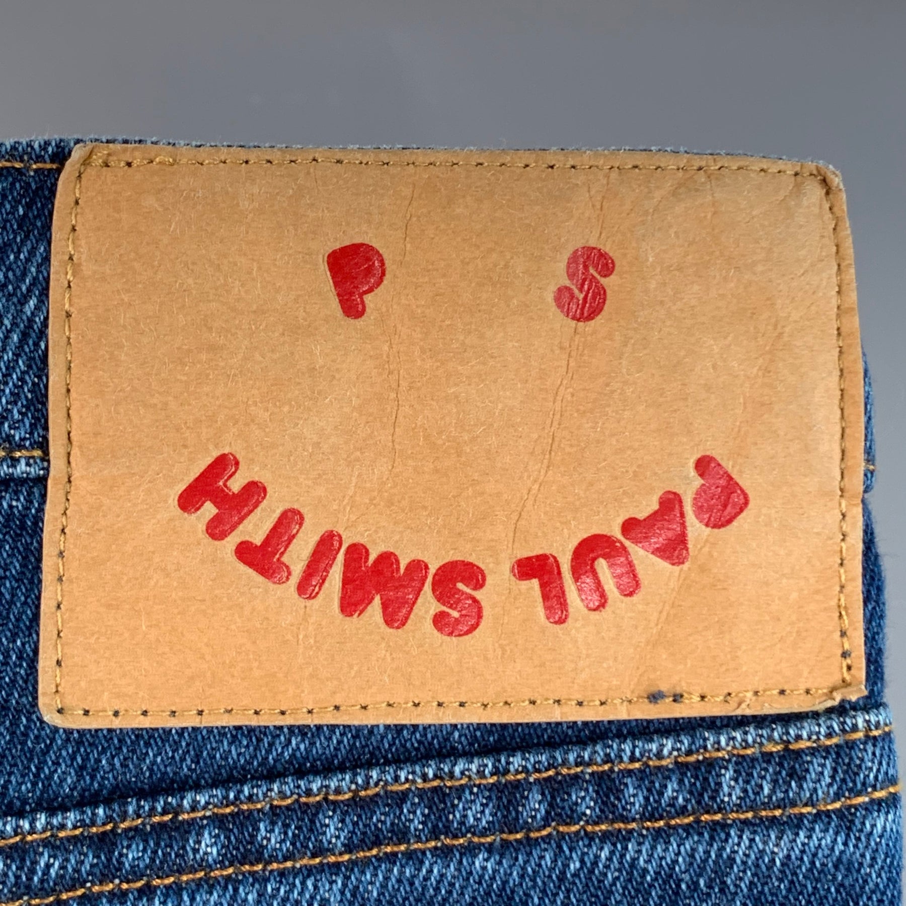 PAUL SMITH SS24 Size 34 Blue Washed Cotton Straight Contrast Stitch Jeans