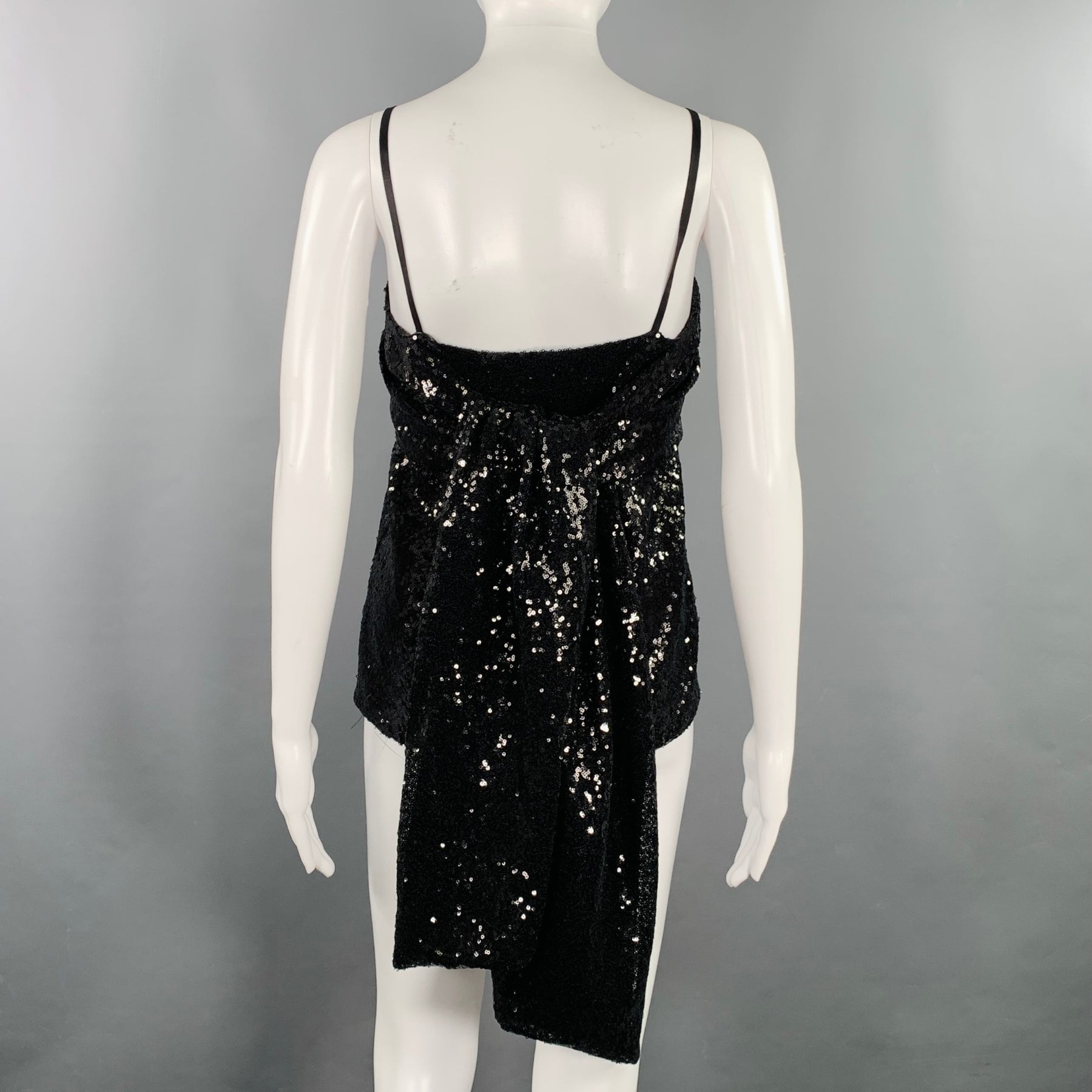 PRABAL GURUNG Size 0 Black Polyester Sequined Draped Dress Top