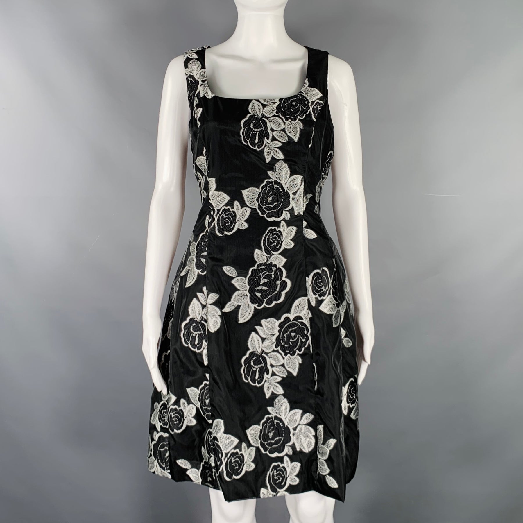 PRABAL GURUNG Size 10 Black Silver Polyester Floral A-Line Cocktail Dress