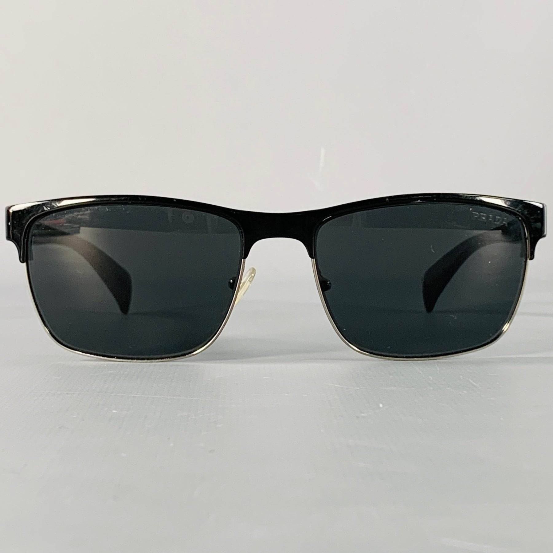 PRADA Black Silver Acetate Metal Semi Rimless Sunglasses