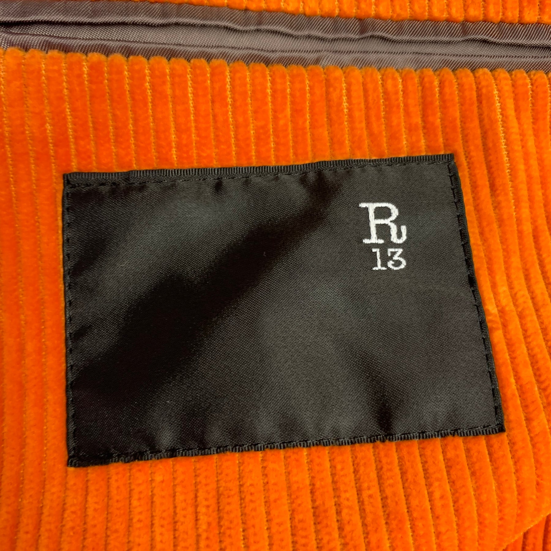 R13 Size 38 Orange Corduroy Cotton Notch Lapel Sport Coat