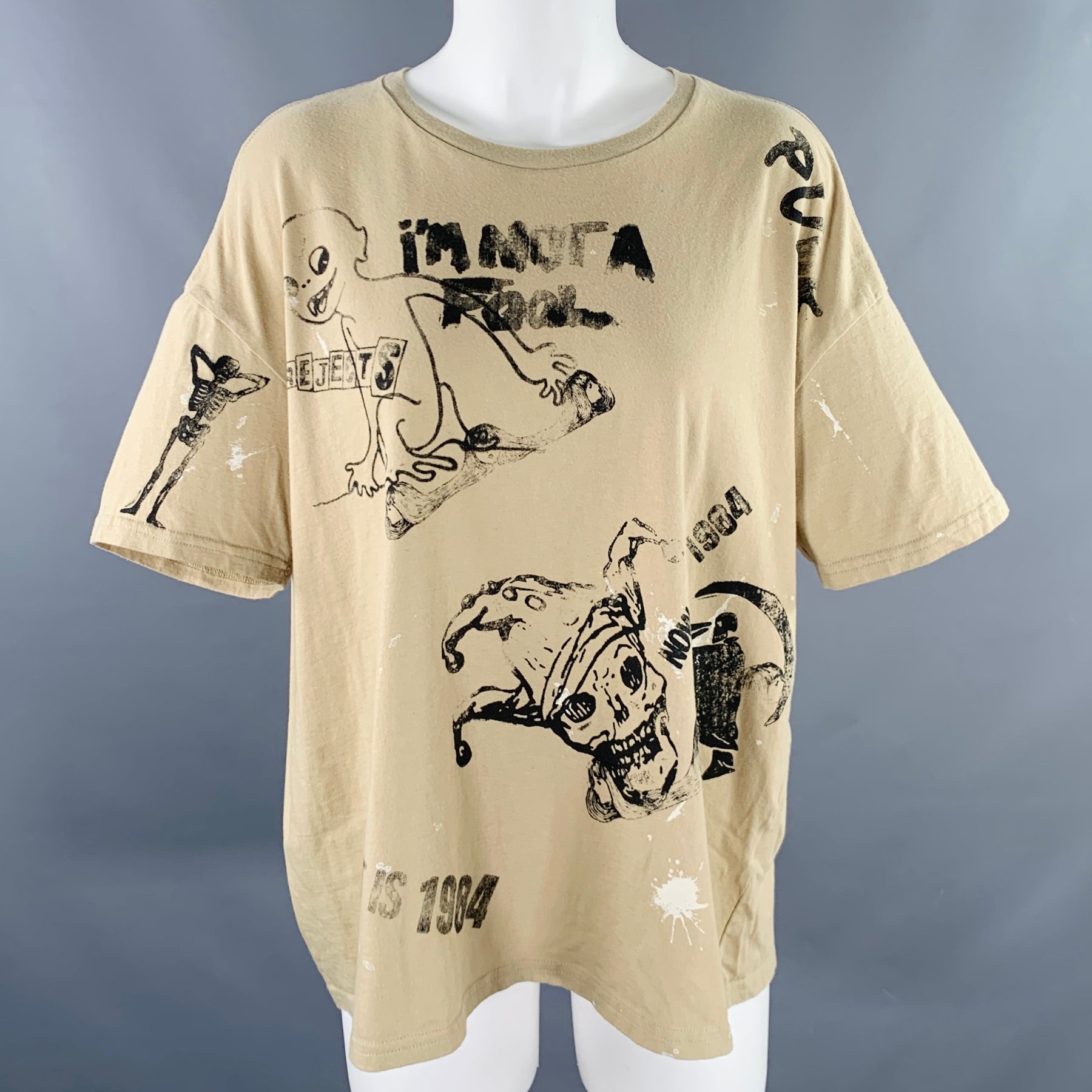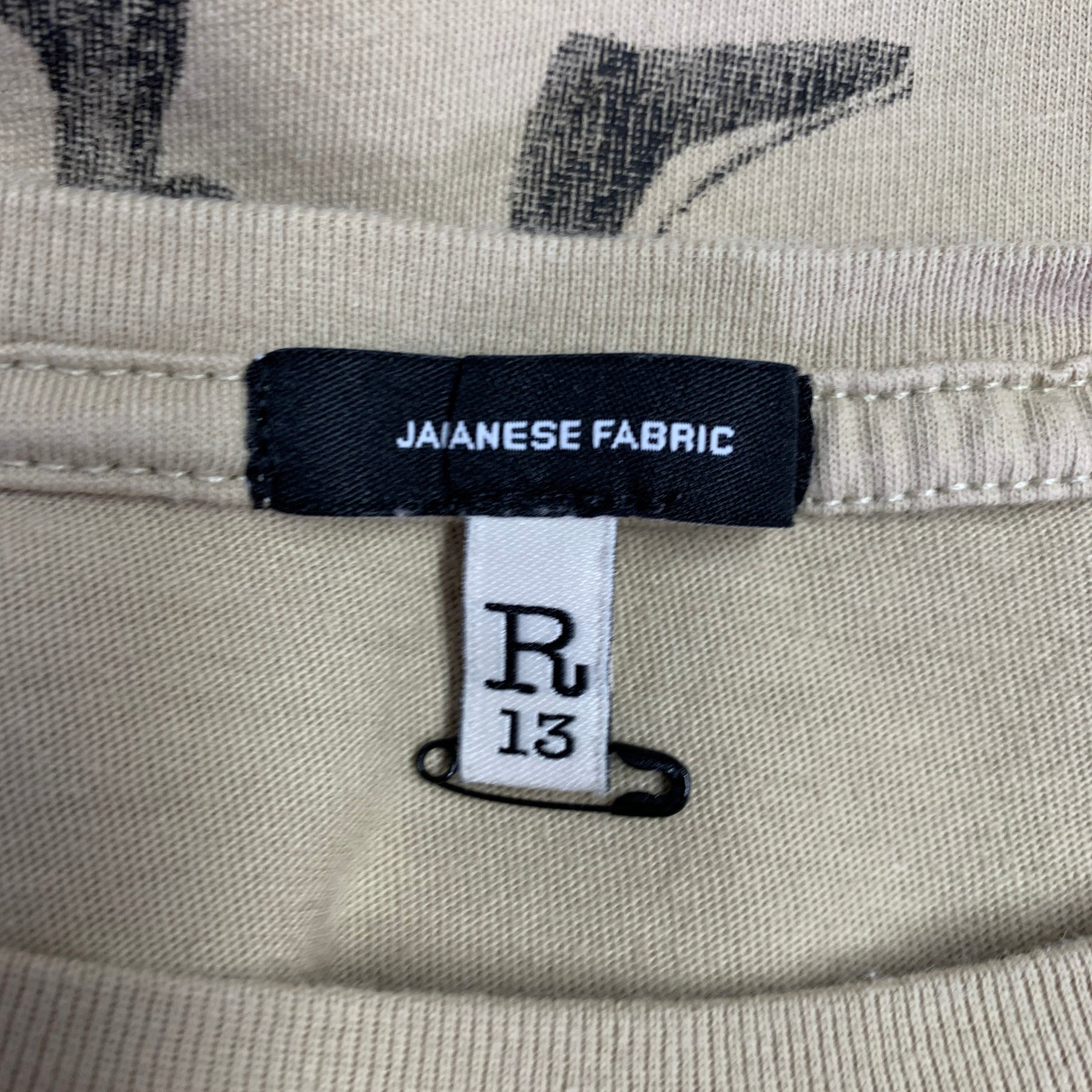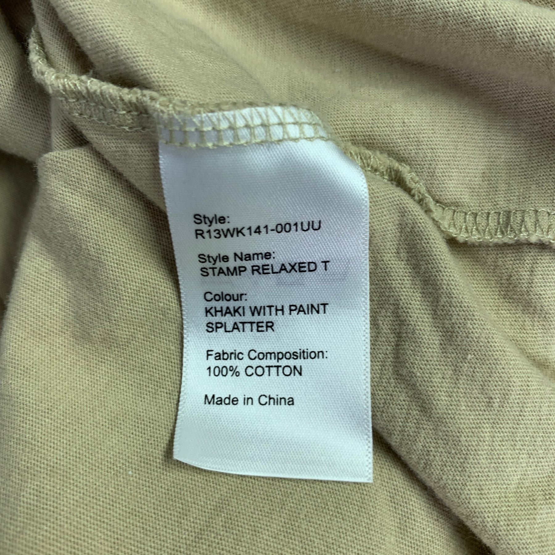 R13 Size M Stamp Khaki Black Cotton Punk Short Sleeve T-shirt