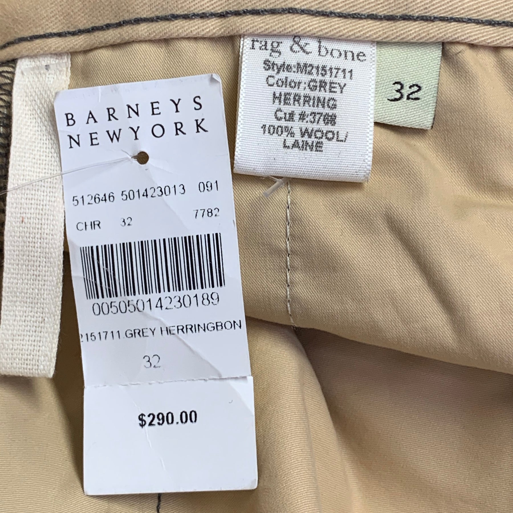 RAG & BONE for BARNEY'S casual pants in a charcoal grey wool featuring a herringbone pattern, tapered leg, and zip fly closure.