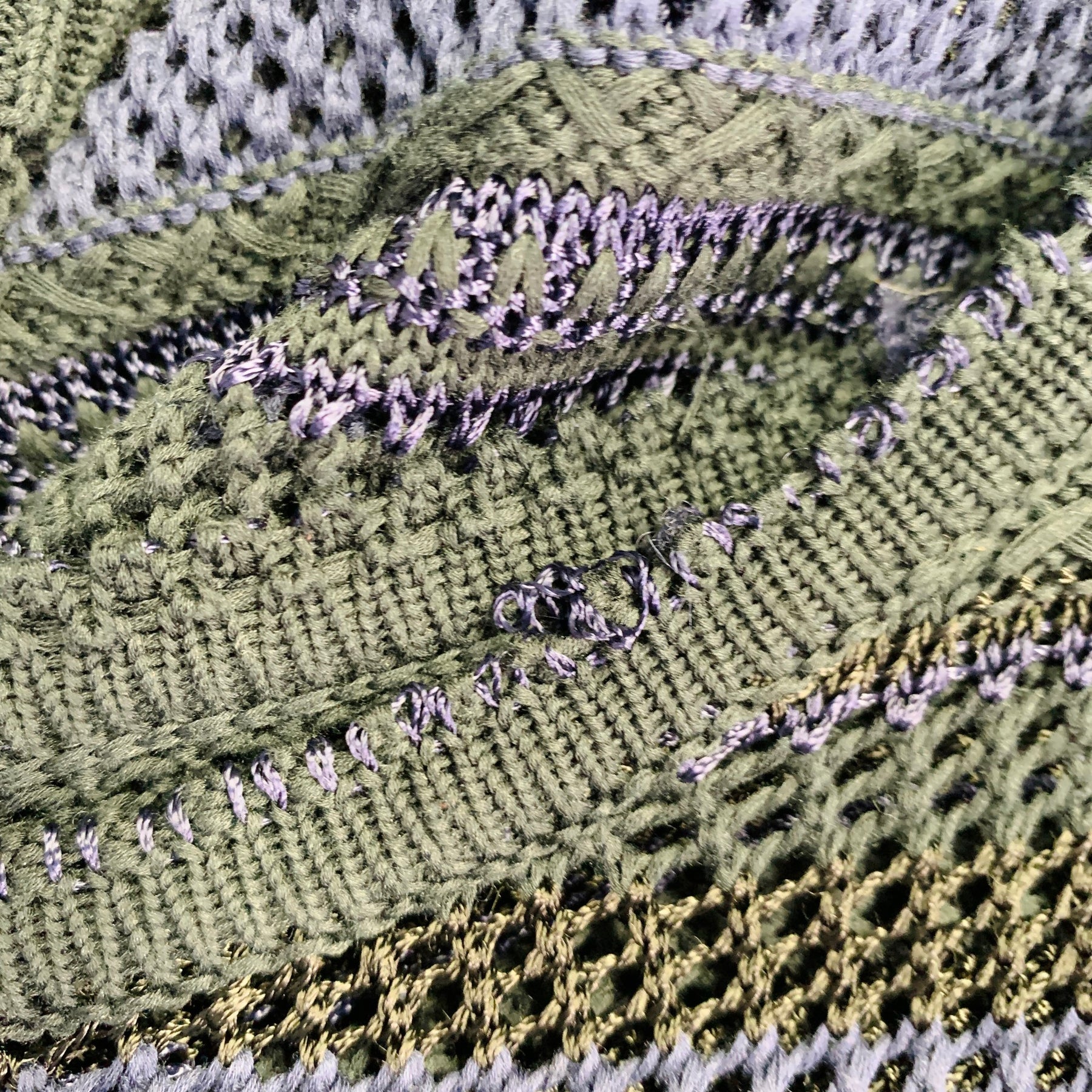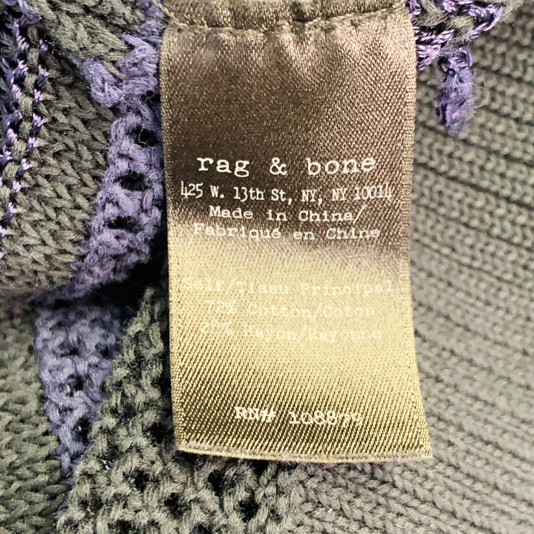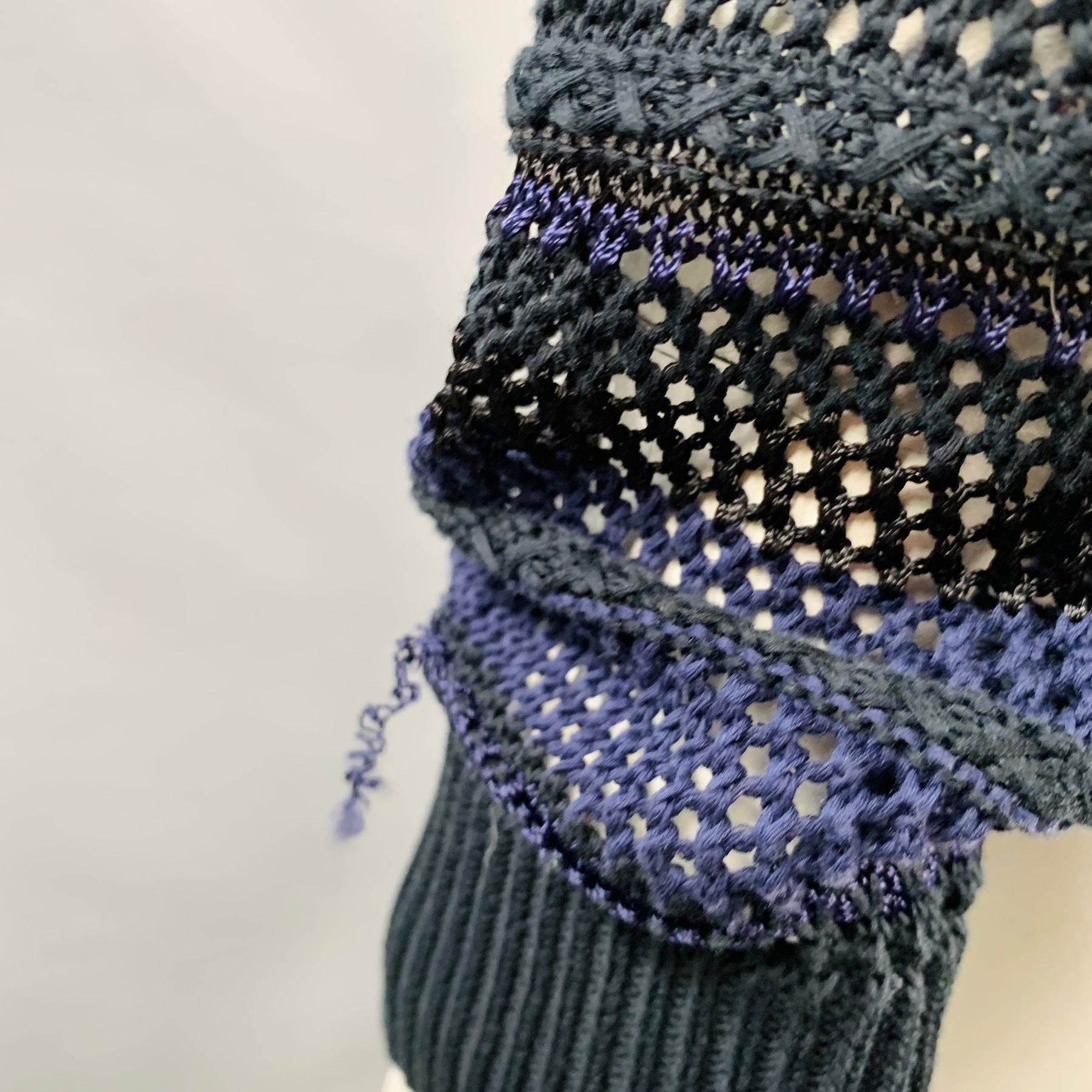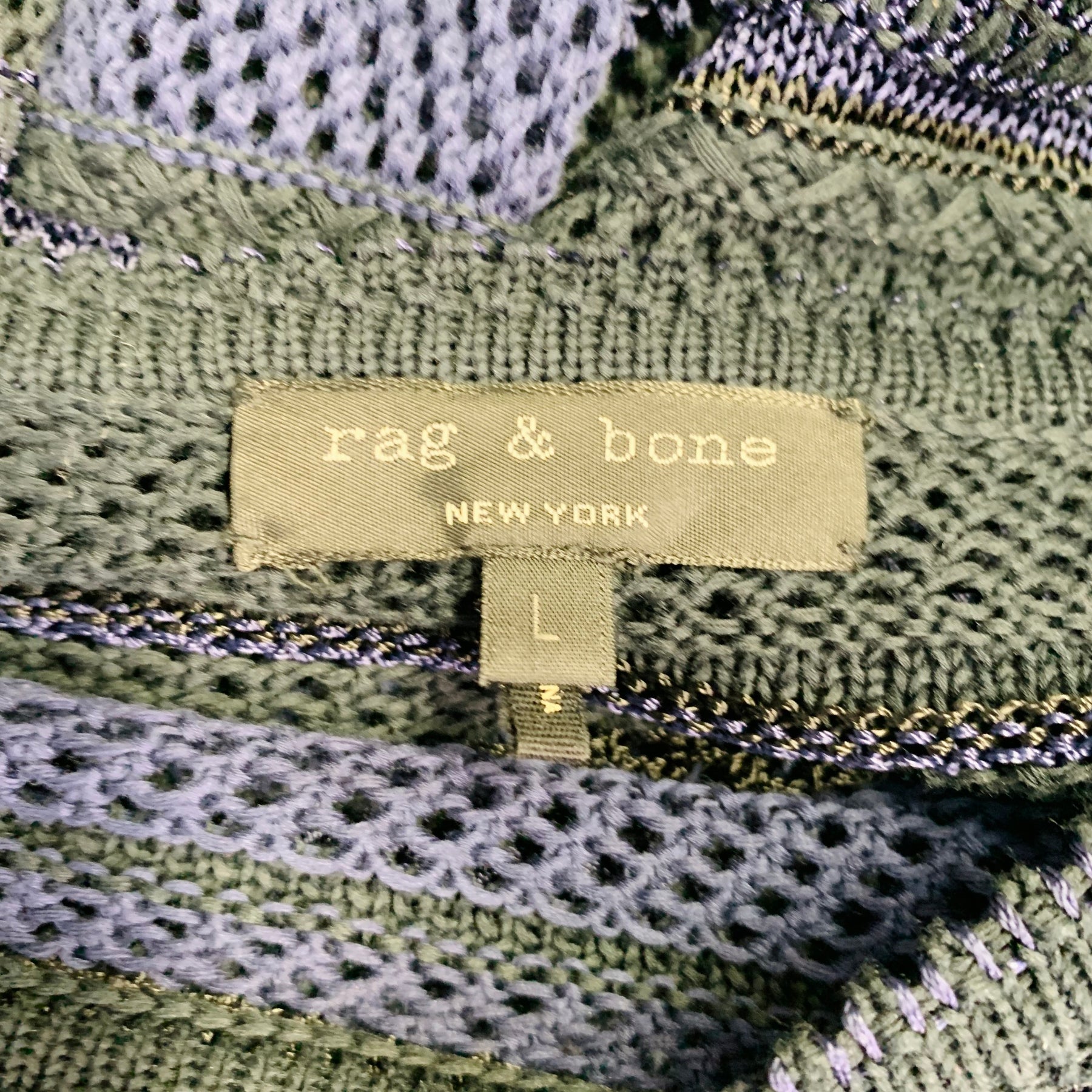 RAG & BONE Size L Navy Black Cotton Blend Textured Stripe Open Knit Pullover